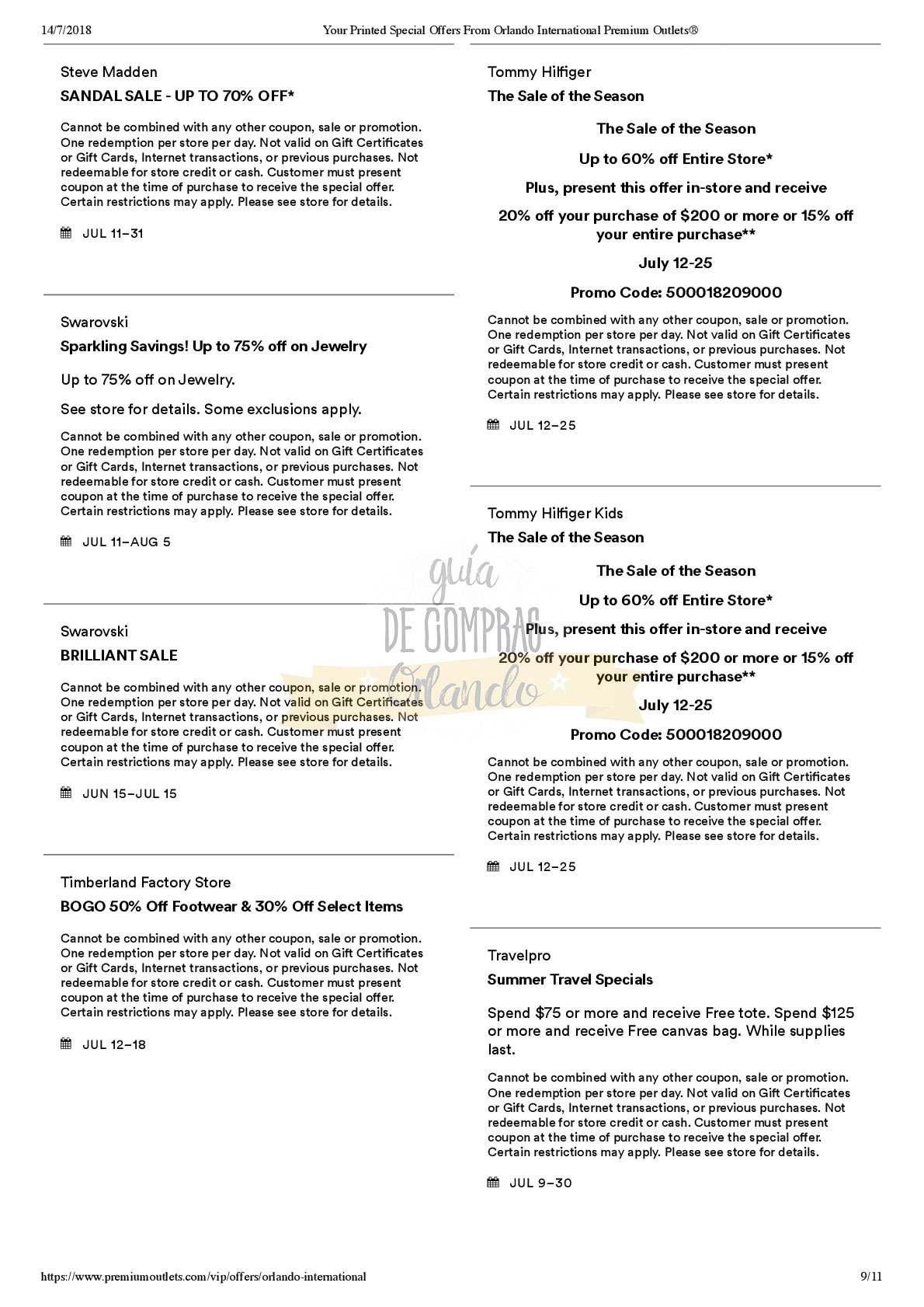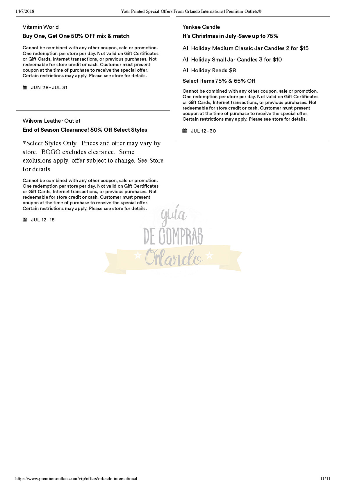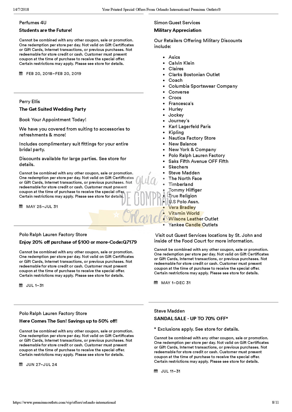 A continuación les dejamos los cupones para las distintas tiendas de Orlando International Premium Outlets ®  y un link para conseguir además una cuponera llena de descuentos distintos a los que acá les damos.