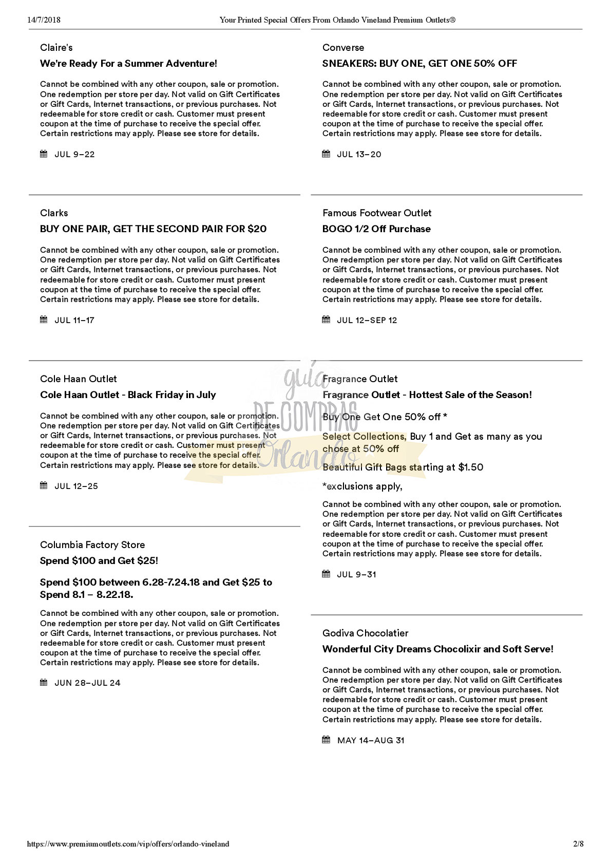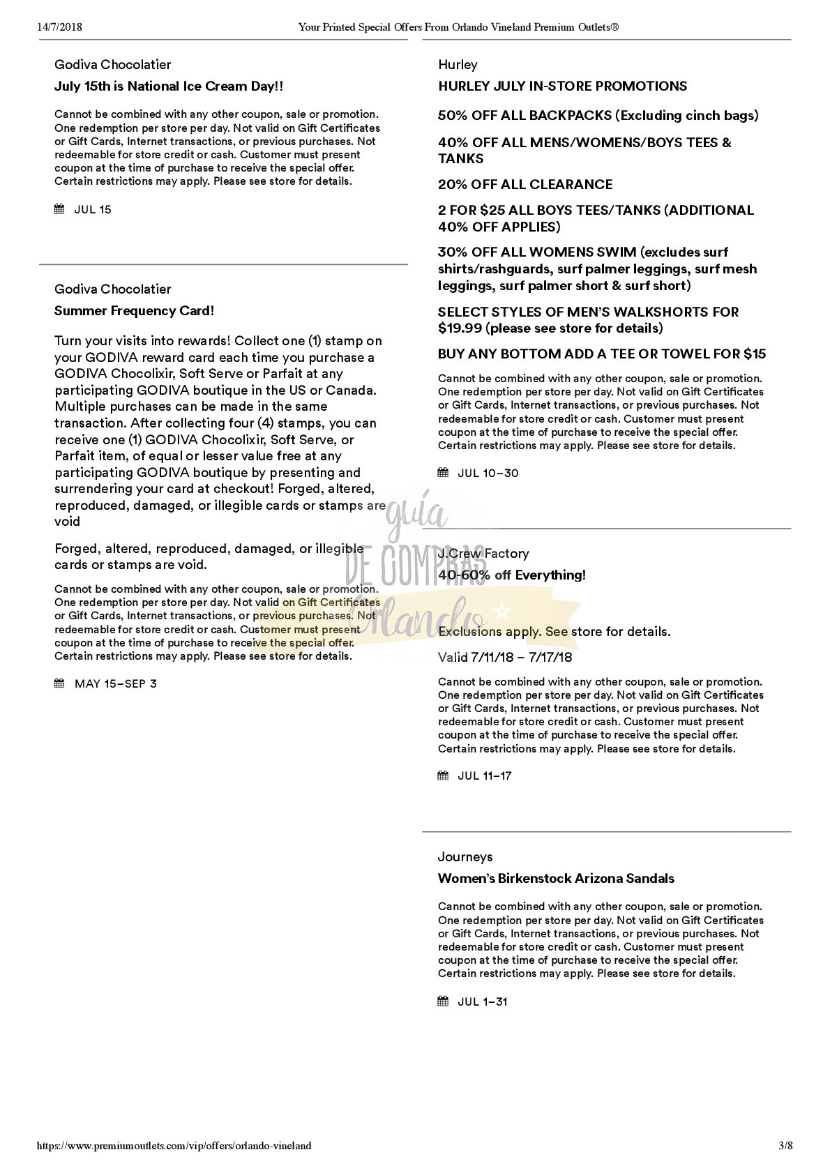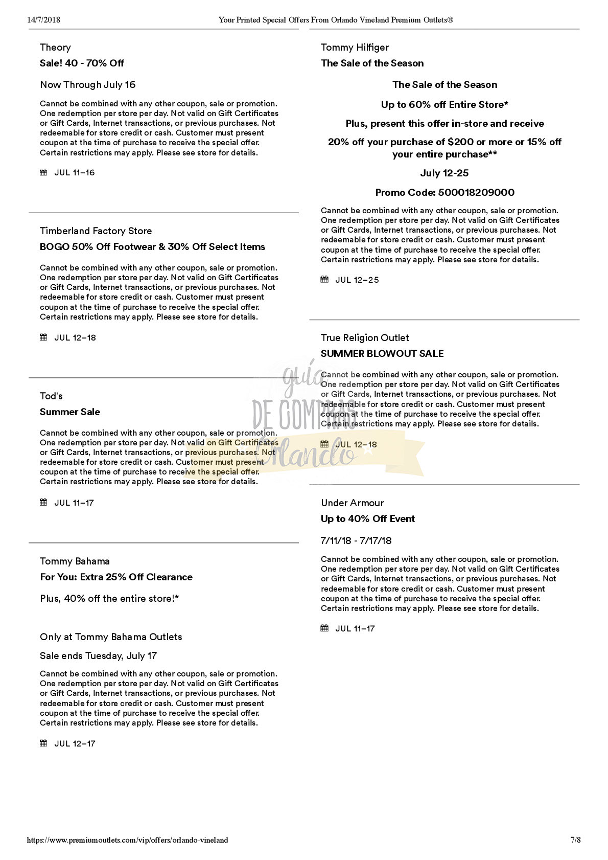 A continuación les dejamos los cupones para las distintas tiendas de Orlando International Premium Outlets ®  y un link para conseguir además una cuponera llena de descuentos distintos a los que acá les damos.