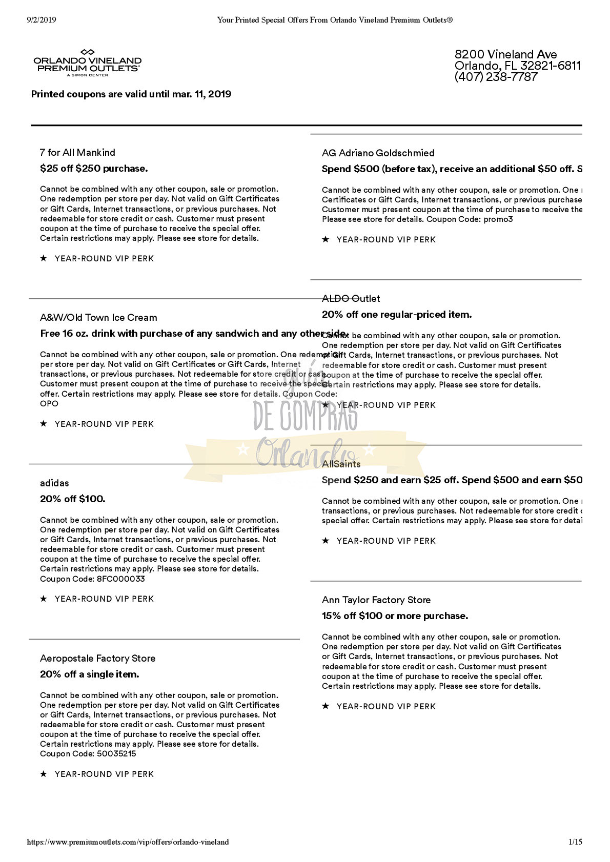 LES DEJAMOS UN VALE PARA CANJEAR POR UNA CUPONERA EXCLUSIVA PARA LOS SEGUIDORES DE GUÍA DE COMPRAS ORLANDO!