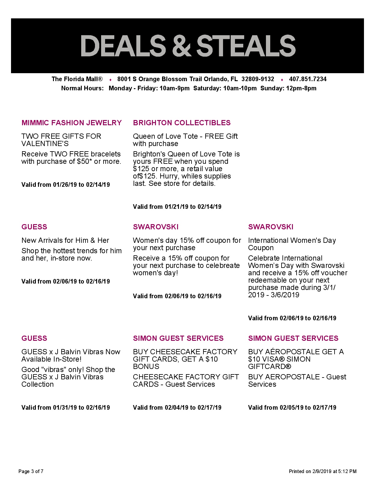 The Mall at Millenia® y The Florida Mall® también ofrecen unos descuentos impresionantes, que suelen aplicar a toda la tienda.