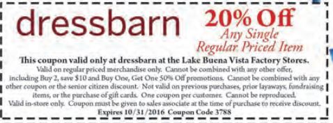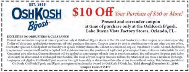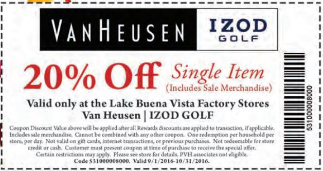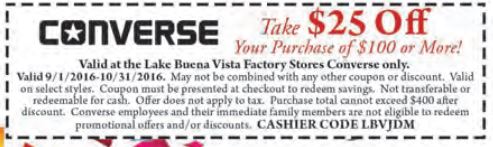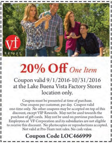 Lake Buena Vista Factiry Stores ® también tiene una cuponera llena de descuentos! Aquí todos los que podrán aprovechar, y un link para conseguir además cuponera gratis con ¡más descuentos!