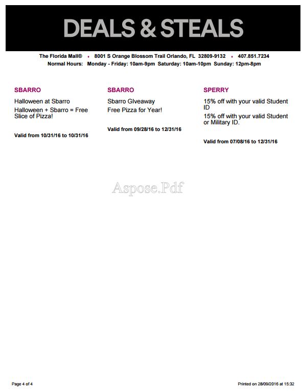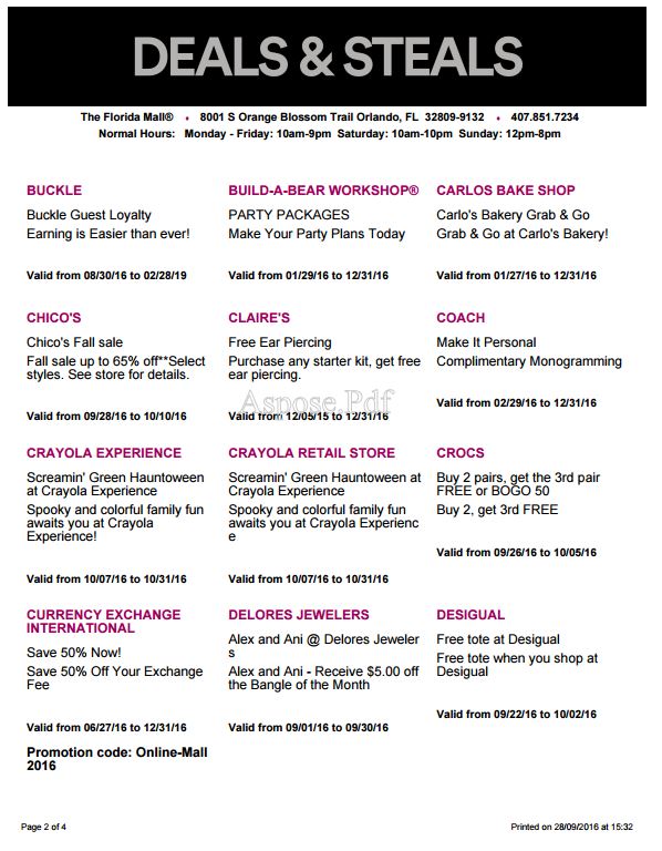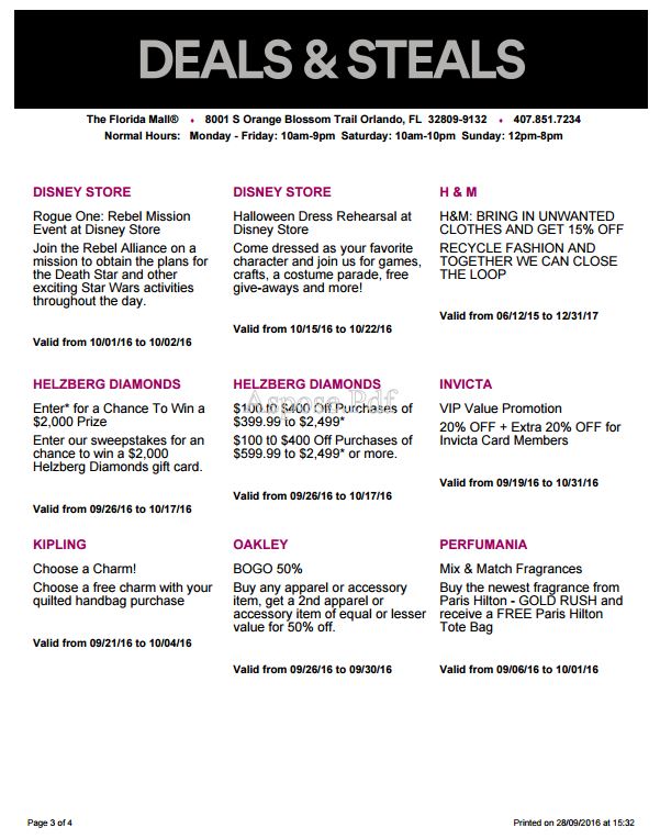 A continuación les dejamos los cupones para el Florida Mall ®, que tiene una variedad enorme de tiendas, algunas exclusivas como Apple Store®, Microsoft Store® o Abercrombie & Fitch®.