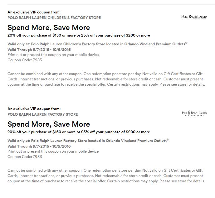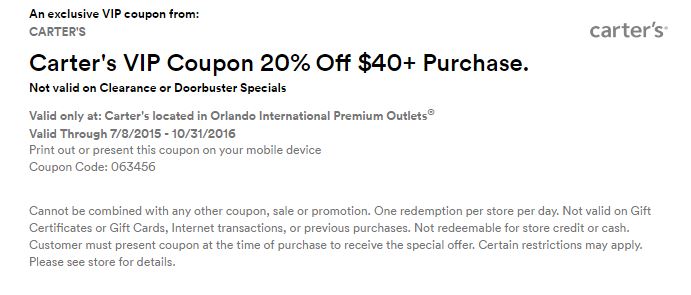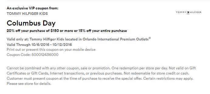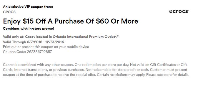A continuación les dejamos los cupones para las distintas tiendas de Orlando International Premium Outlets ® y un link para conseguir además una cuponera llena de descuentos distintos a los que acá les damos.