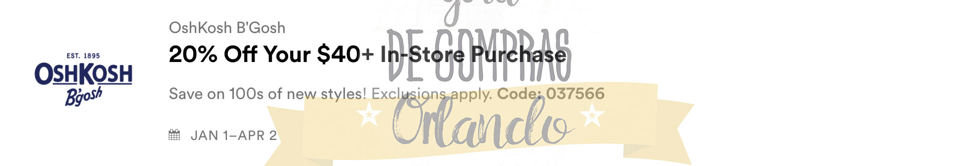 A continuación les dejamos los cupones para las distintas tiendas de Orlando International Premium Outlets ®  y un link para conseguir además una cuponera llena de descuentos distintos a los que acá les damos.
