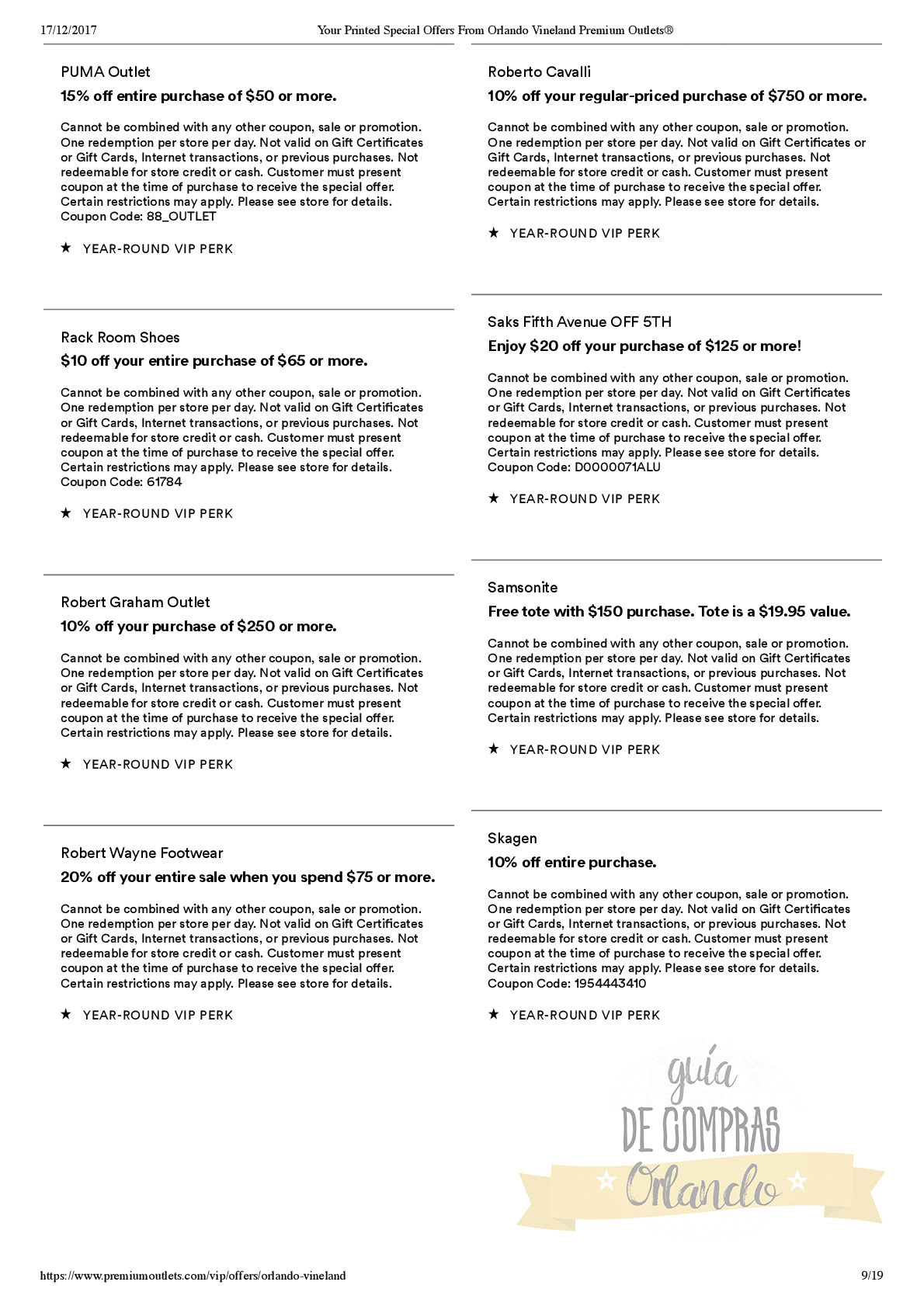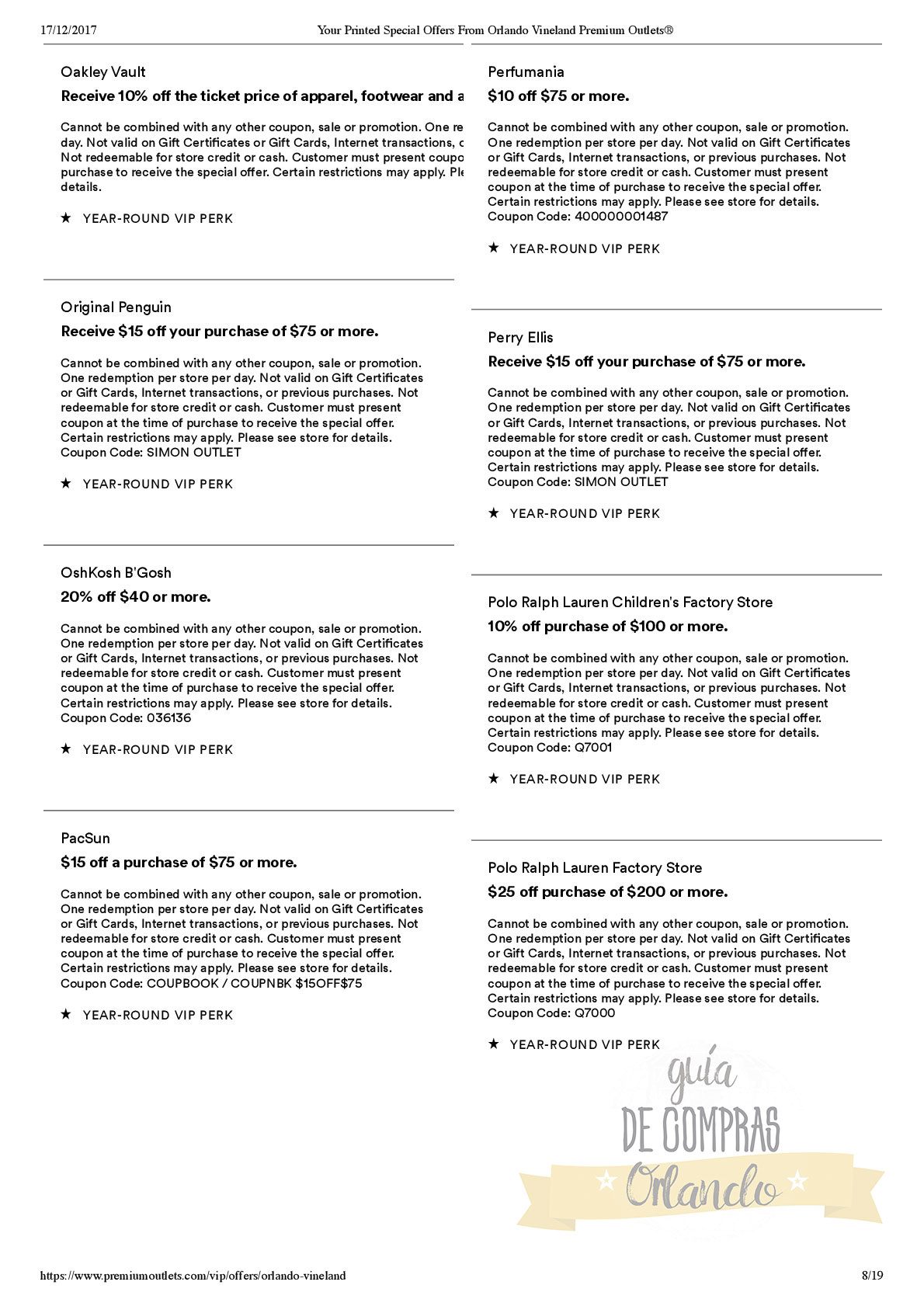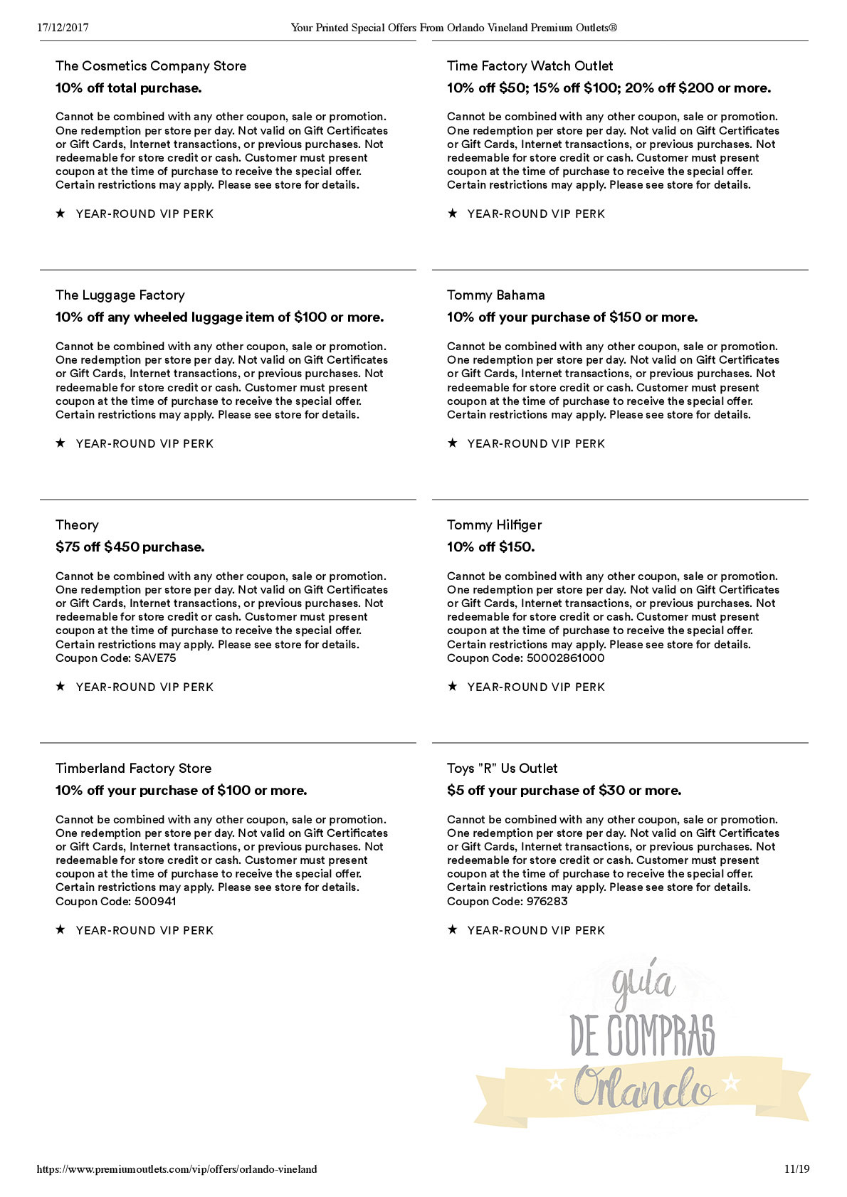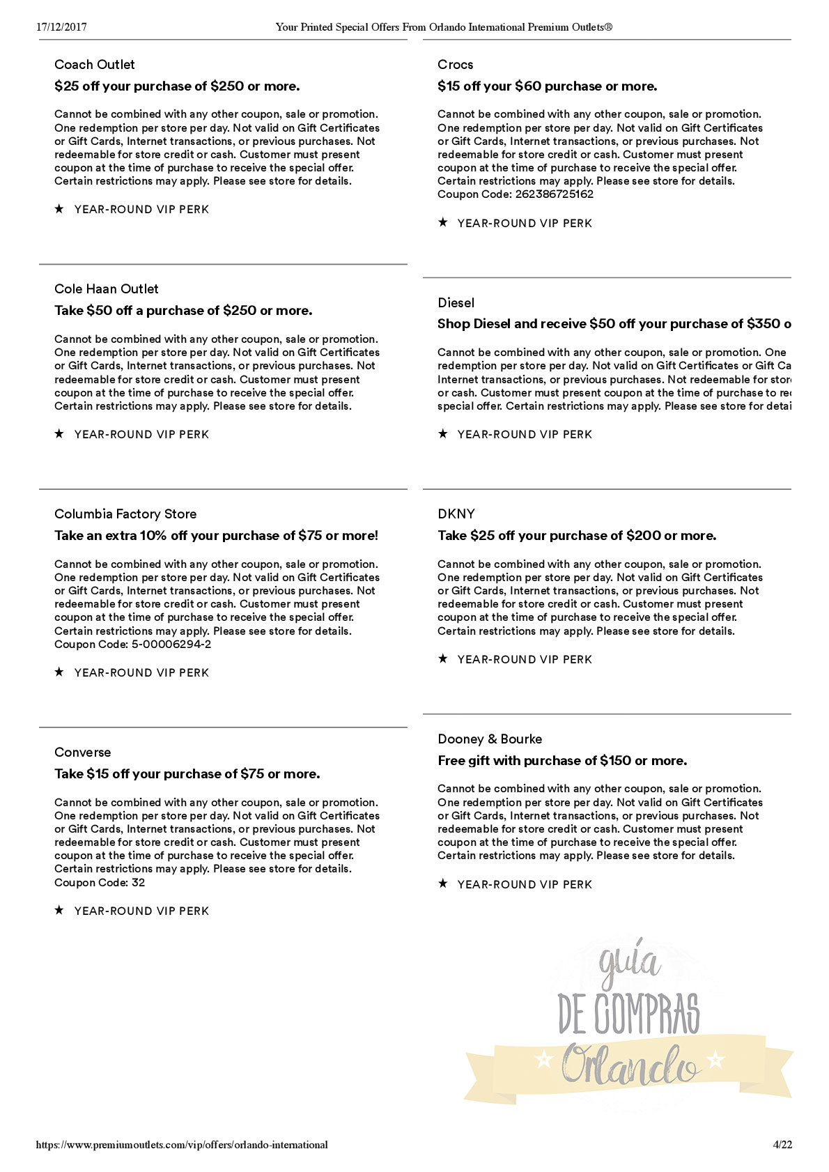 LES DEJAMOS UN VALE PARA CANJEAR POR UNA CUPONERA EXCLUSIVA PARA LOS SEGUIDORES DE GUÍA DE COMPRAS ORLANDO!