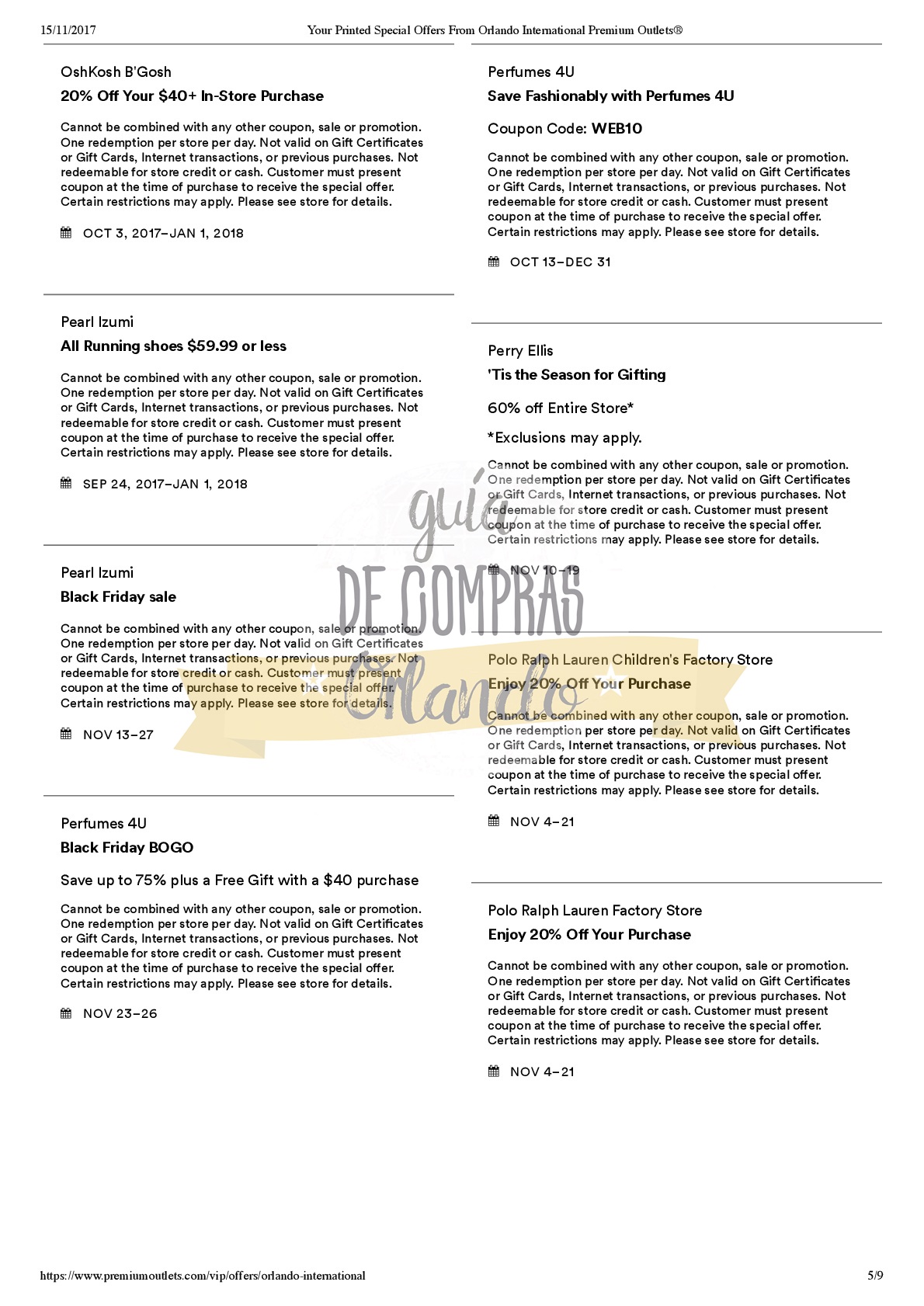 A continuación les dejamos los cupones para las distintas tiendas de Orlando International Premium Outlets ® y un link para conseguir además una cuponera llena de descuentos distintos a los que acá les damos.