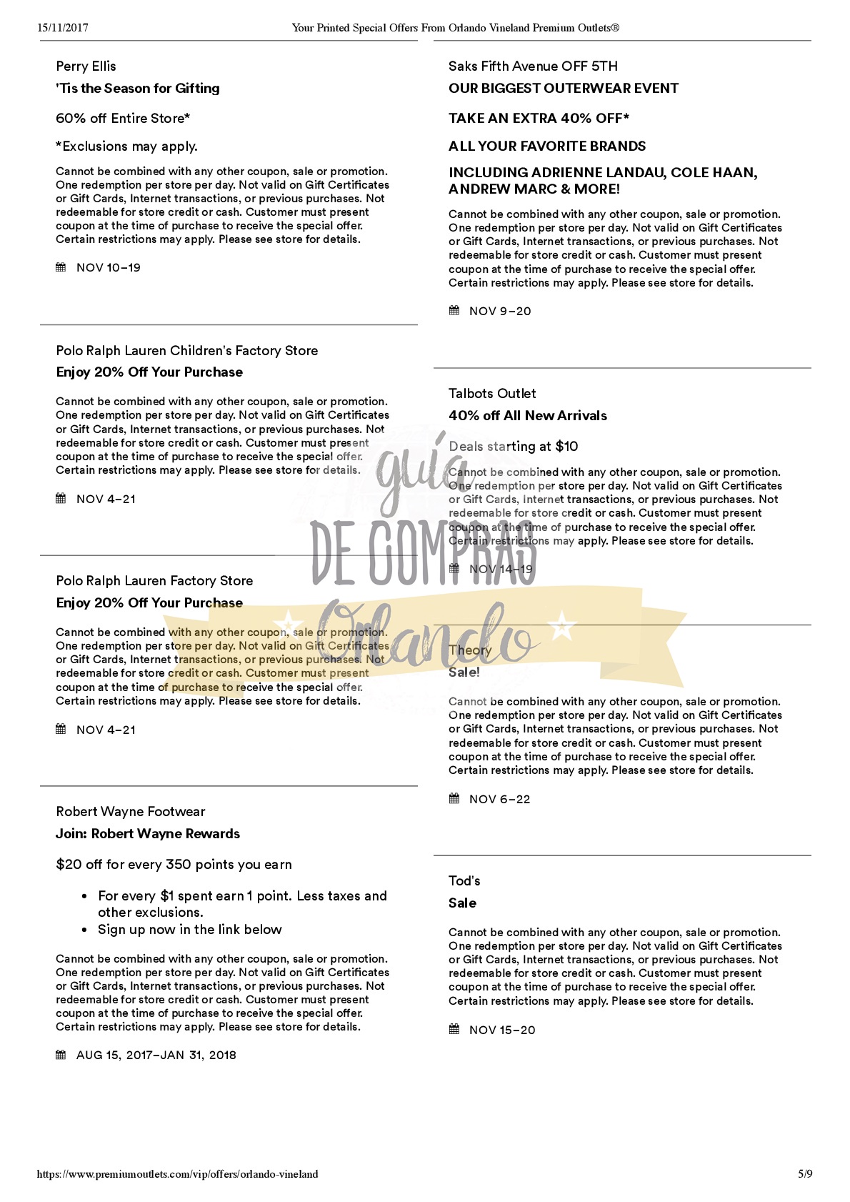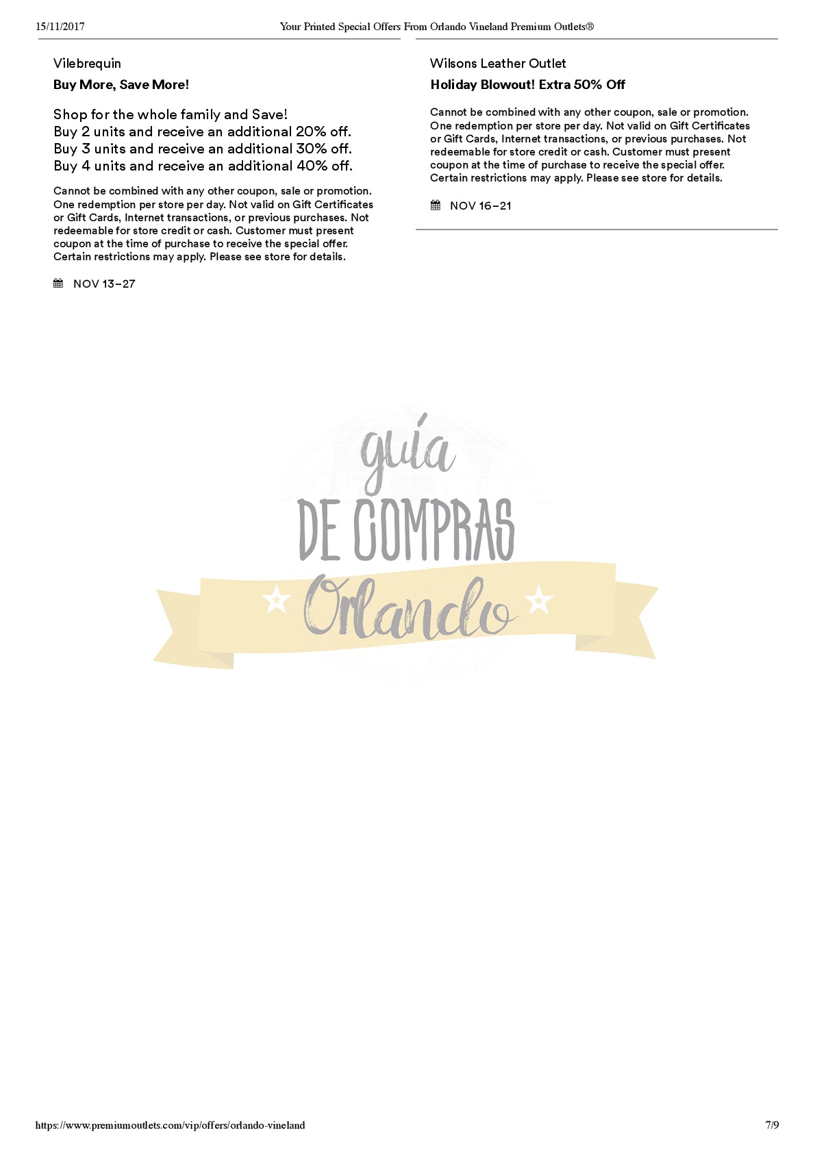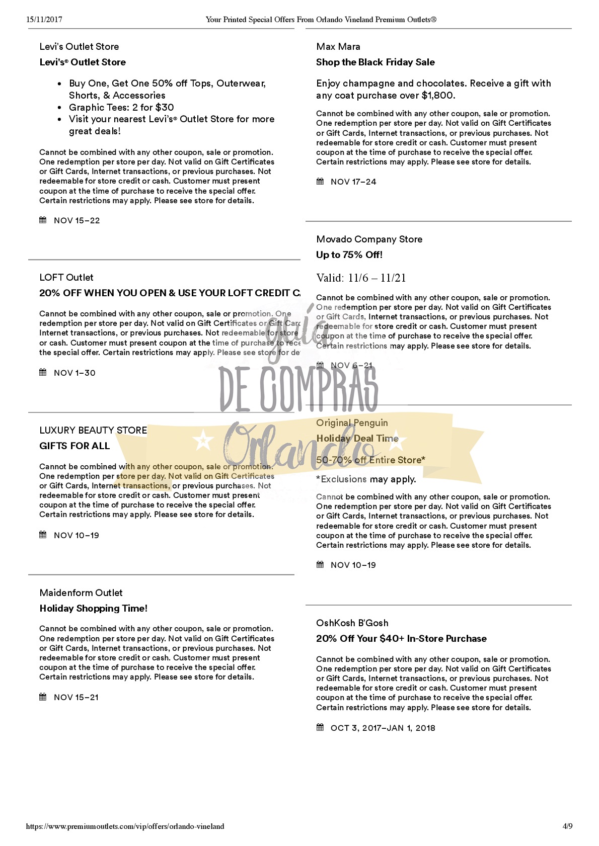 A continuación les dejamos los cupones para las distintas tiendas de Orlando Vineland Premium Outlets ® y un link para conseguir además una cuponera llena de descuentos distintos a los que acá les damos.