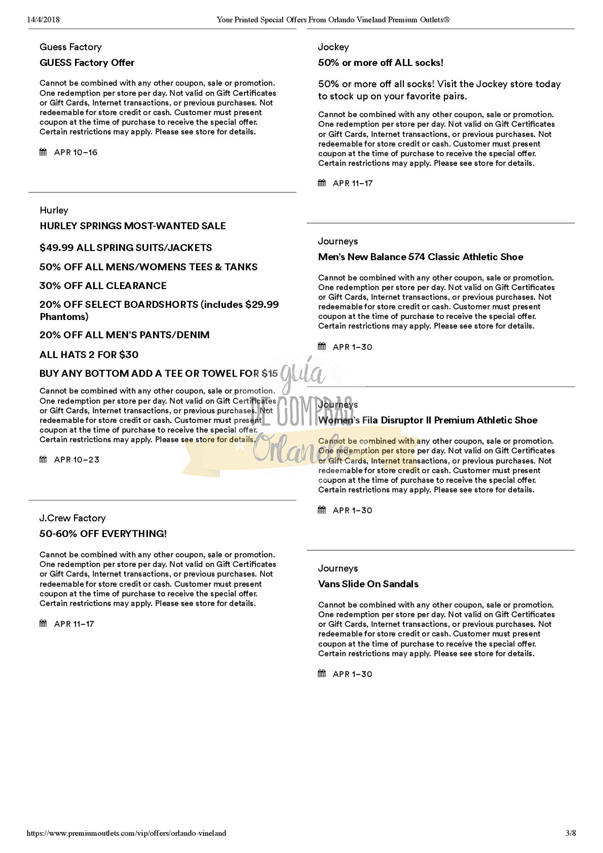 Son publicados por las marcas (tiendas) y SÍ tienen fecha de vencimiento / caducidad. Generalmente no coinciden con los que aparecen en las Cuponeras de Descuentos. Los publicamos SIEMPRE en la web de Guía de Compras Orlando.