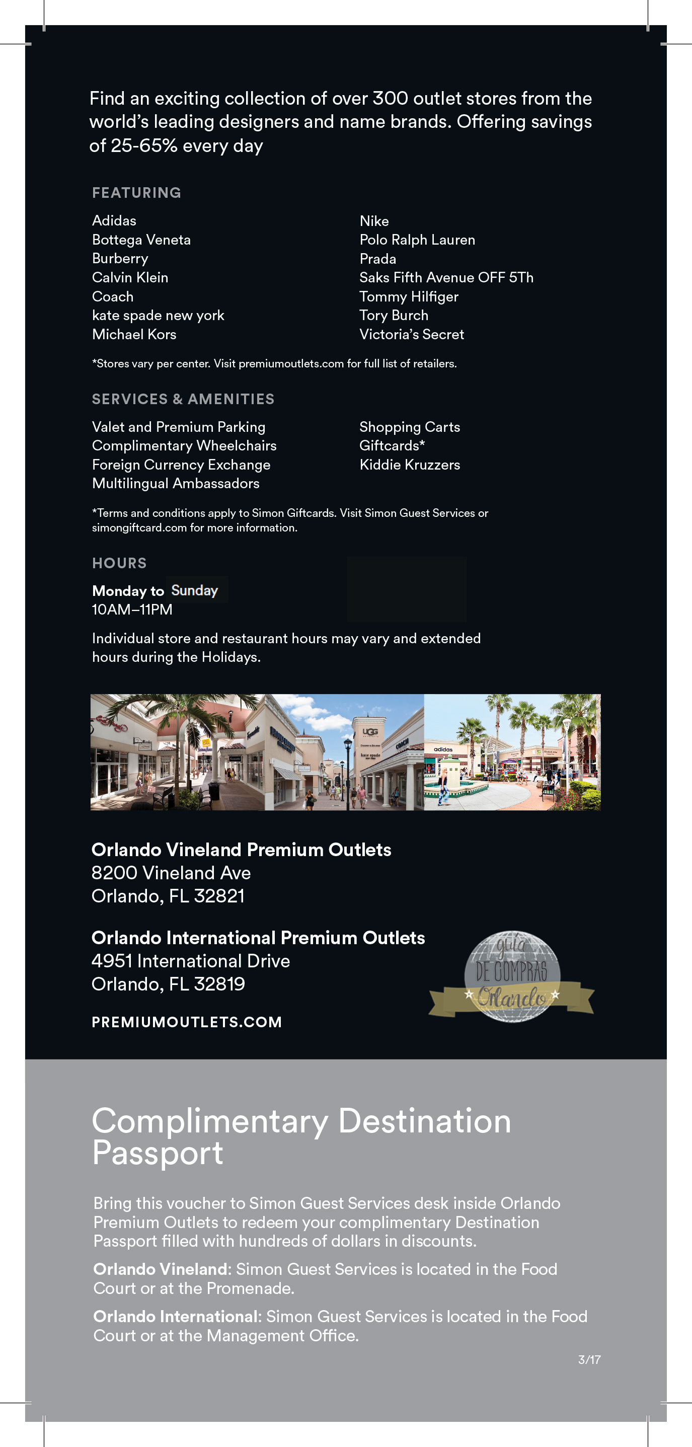 Para The Lake Buena Vista Factory Stores®, deben presentar este voucher en la tienda Travel Pro Luggage, en el Mall Office o en la tienda VF.