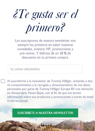 Prácticamente todas las marcas que venden online ofrecen al entrar en su web la posibilidad de suscribir nuestra dirección de email a su mailing y sólo por hacerlo nos darán en nuestra primera compra descuentos que pueden ir del 10% al 30% adicional a las ofertas existentes.