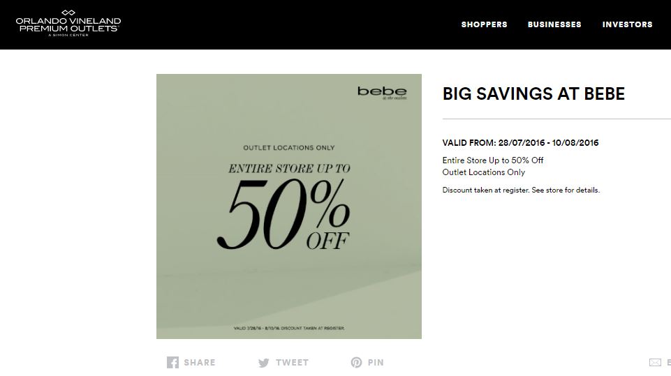 Todas las semanas publicamos en nuestra página oficial de Facebook, los distintos cupones de descuento para los Orlando Premium Outlets ® , Lake Buena Vista Factory Store ® Shoppings, Malls, tiendas, descuentos on line, etc., pero como sabemos que no todos tienen cuenta allí, queremos también dejarlos plasmados acá.