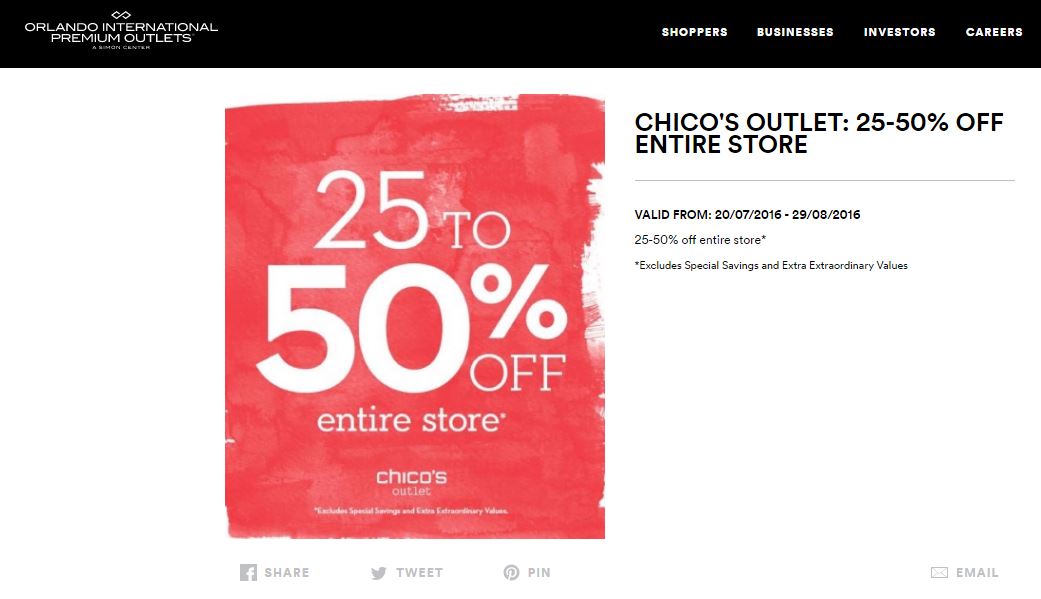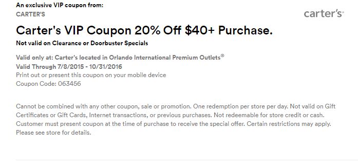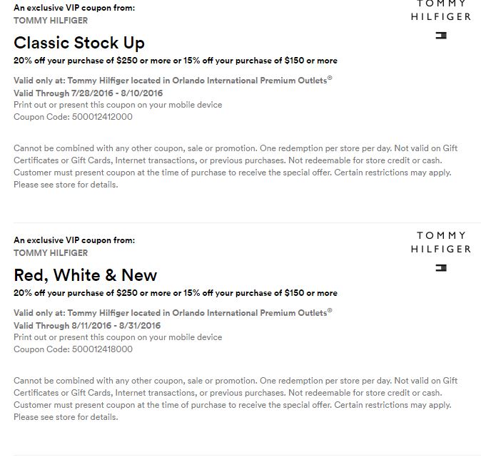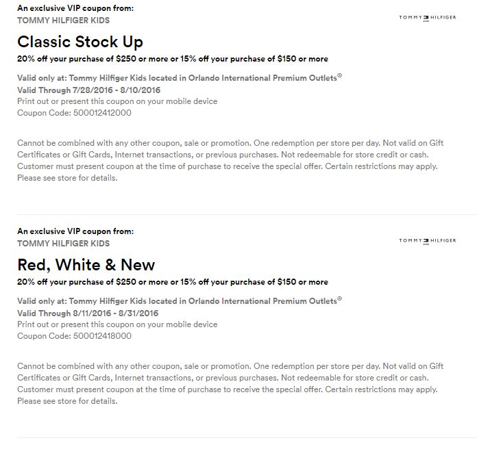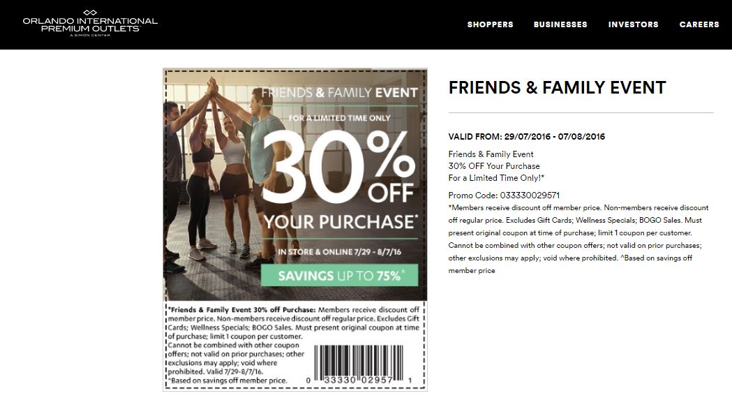 A continuación les dejamos los cupones para las distintas tiendas de Orlando International Premium Outlets ® y un link para conseguir además una cuponera llena de descuentos distintos a los que acá les damos.