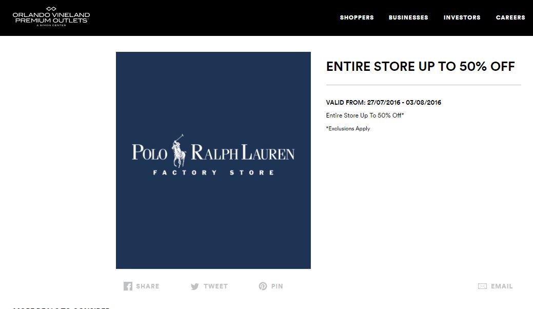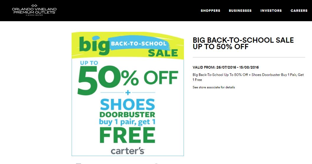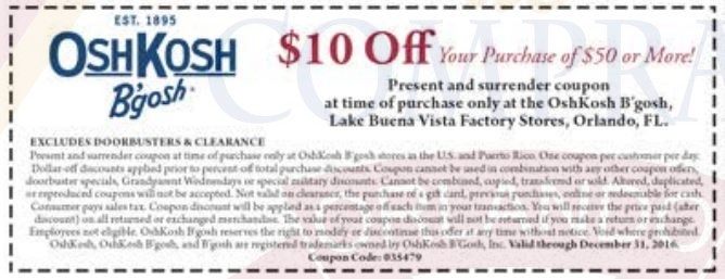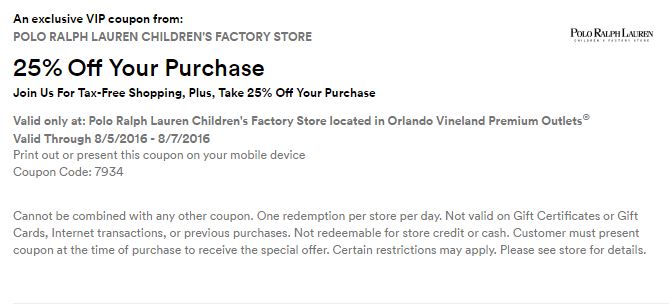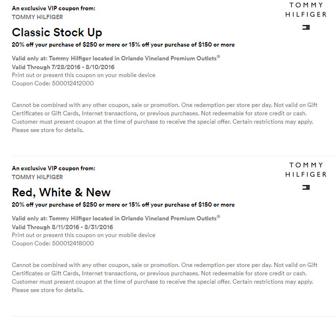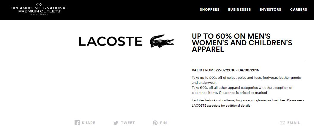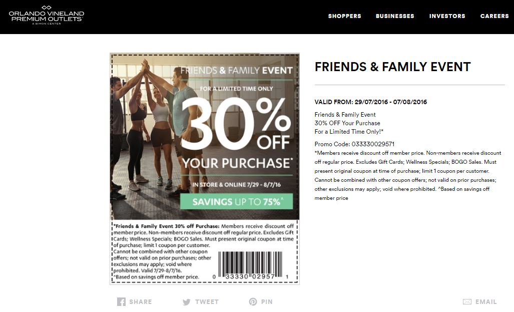 A continuación les dejamos los cupones para las distintas tiendas de Orlando Vineland Premium Outlets ® y un link para conseguir además una cuponera llena de descuentos distintos a los que acá les damos.