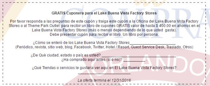 A continuación les dejamos un vale para canjear por una cuponera exclusiva para fans de Guía de Compras Orlando Fl.