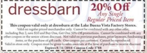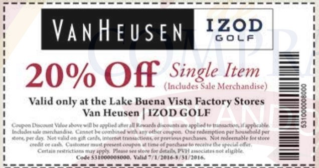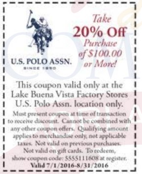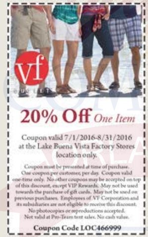 A continuación les dejamos los cupones para las distintas tiendas de Lake Buena Vista Factiry Store ® y un link para conseguir además una cuponera llena de descuentos distintos a los que acá les damos.