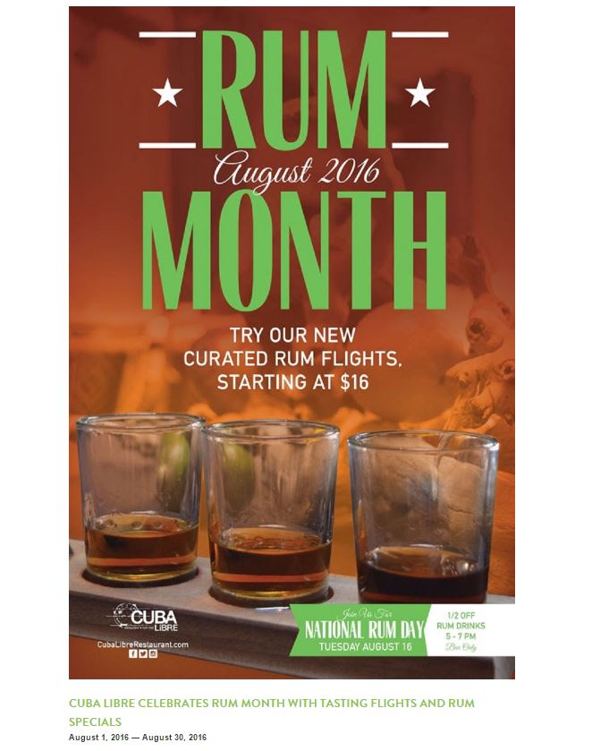 CUBA LIBRE CELEBRATES RUM MONTH WITH TASTING FLIGHTS AND RUM SPECIALS