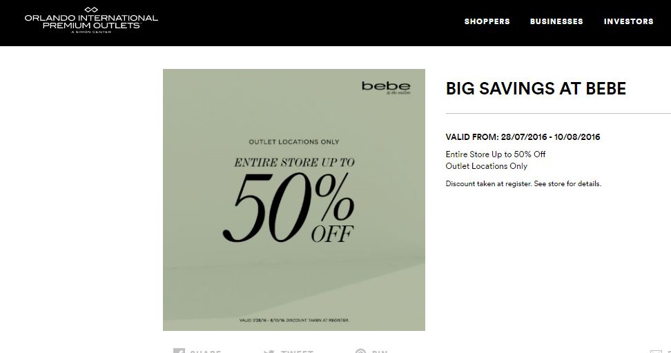 Todas las semanas publicamos en nuestra página oficial de Facebook, los distintos cupones de descuento para los Orlando Premium Outlets ® , Lake Buena Vista Factory Store ® Shoppings, Malls, tiendas, descuentos on line, etc., pero como sabemos que no todos tienen cuenta allí, queremos también dejarlos plasmados acá.