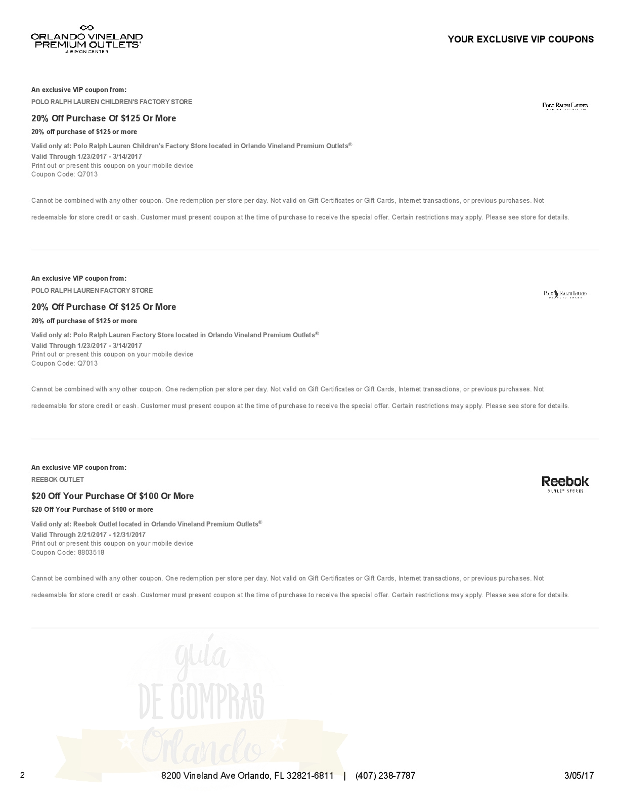 Les dejamos un vale para canjear por una cuponera exclusiva para los seguidores de Guía de Compras Orlando!