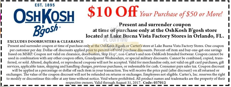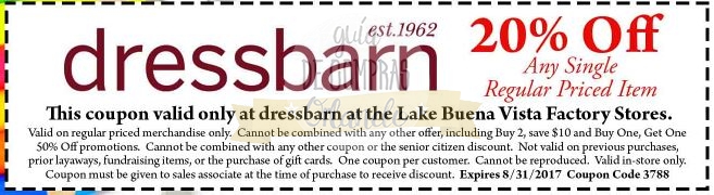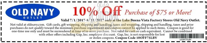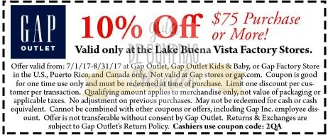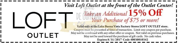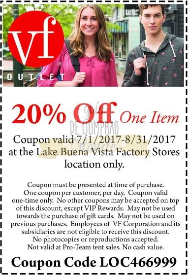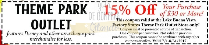 Recuerden que todos estos cupones son válidos sólo para el Lake Buena Vista Factory Store.