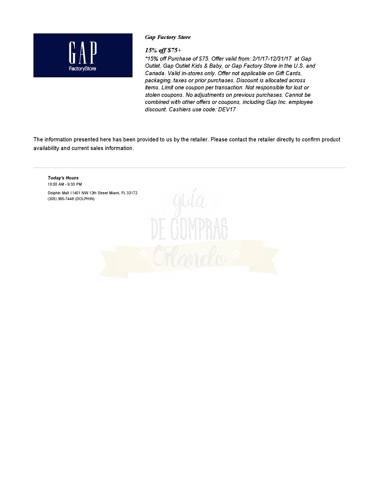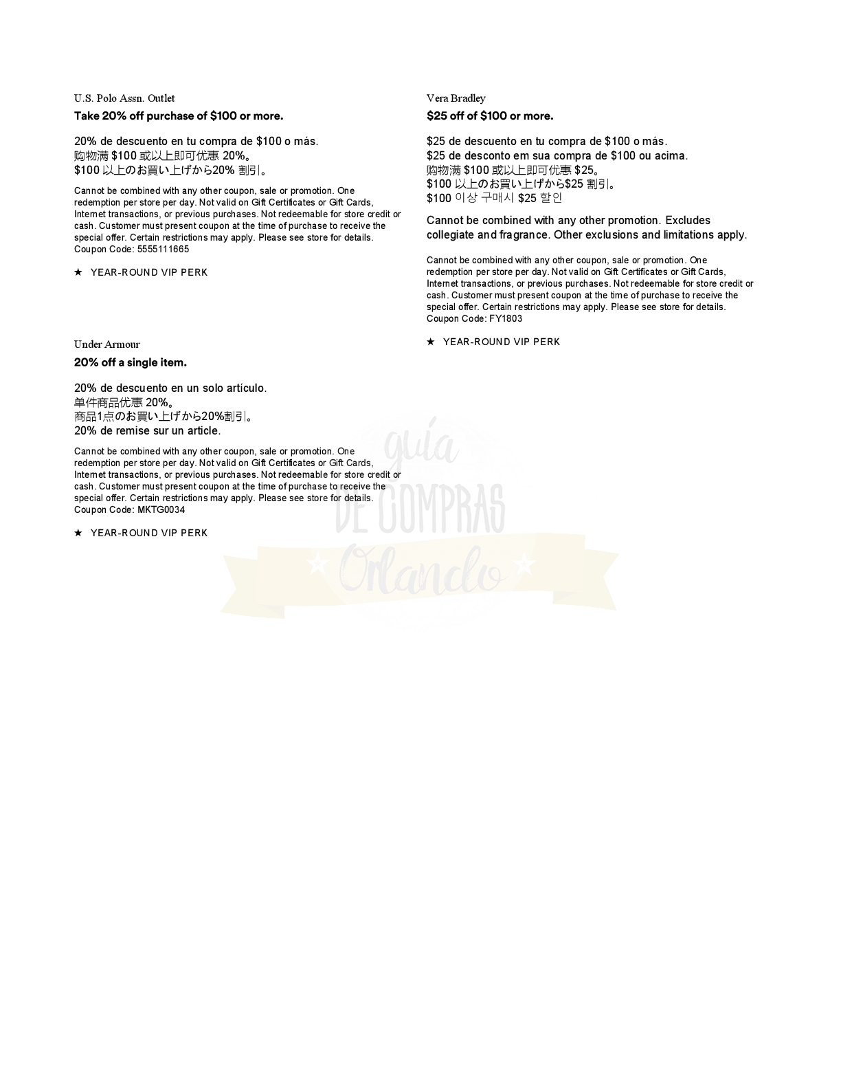LES DEJAMOS UN VALE PARA CANJEAR POR UNA CUPONERA EXCLUSIVA PARA LOS SEGUIDORES DE GUÍA DE COMPRAS ORLANDO!