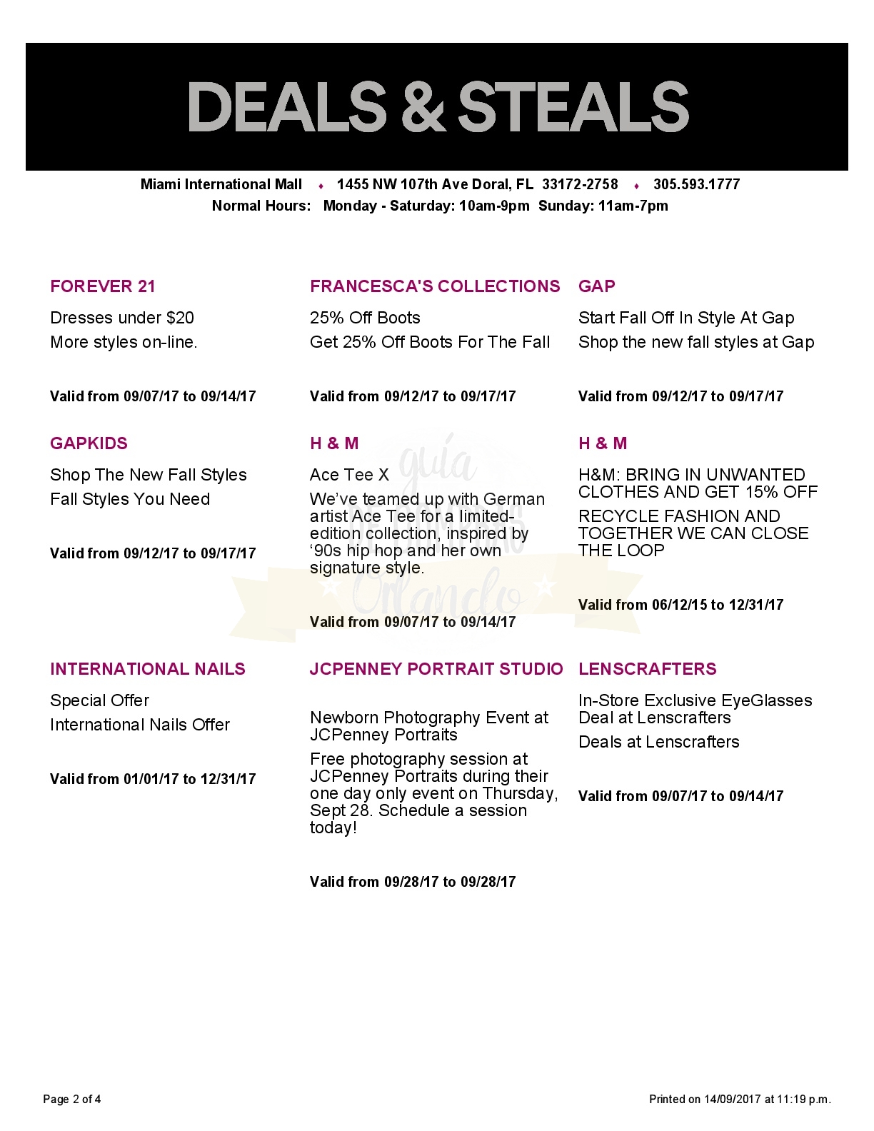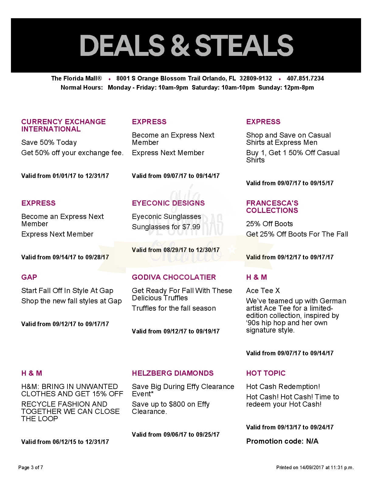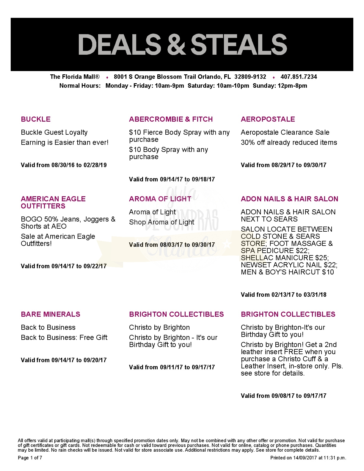 A continuación les dejamos los cupones para el Florida Mall ®, que tiene una variedad enorme de tiendas, algunas exclusivas como Apple Store®, Microsoft Store® o Abercrombie & Fitch®