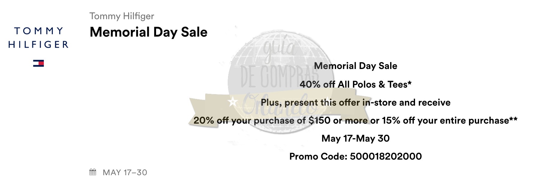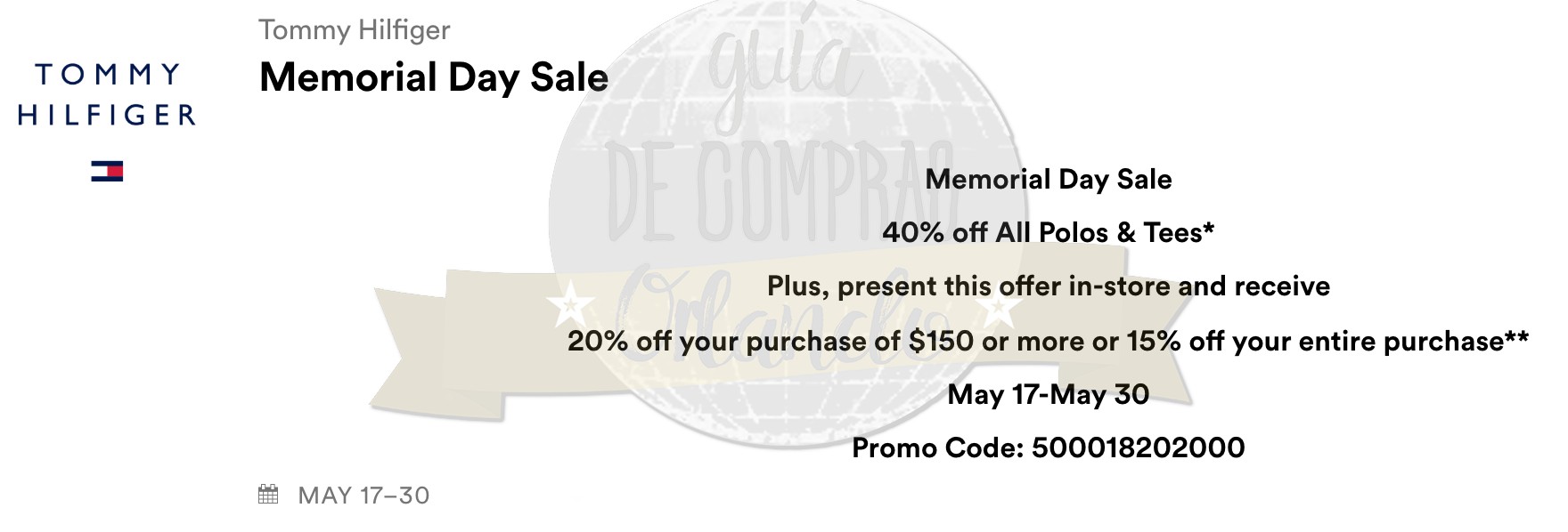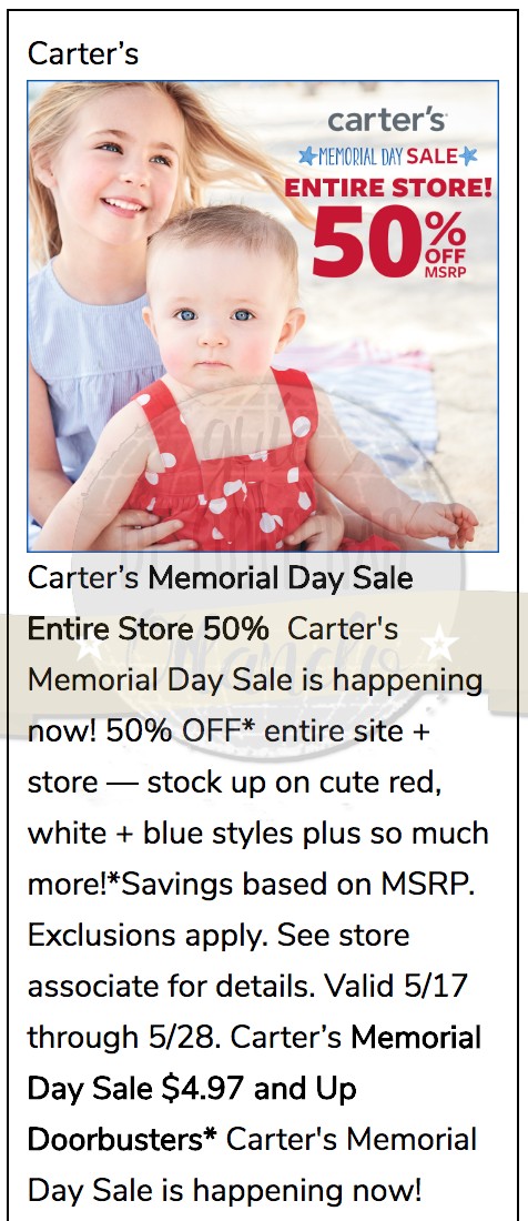 6 pensamientos sobre “¡Descuentos del 30%-40%-50%-70% en toda la tienda! Memorial Day Weekend 2018