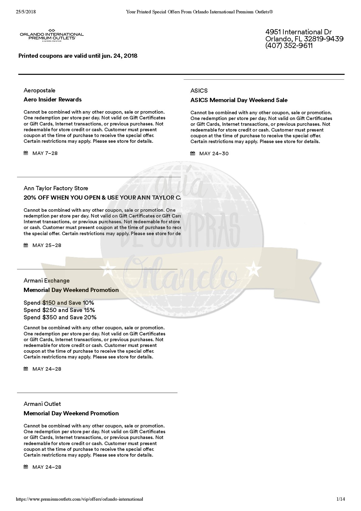 LES DEJAMOS UN VALE PARA CANJEAR POR UNA CUPONERA EXCLUSIVA PARA LOS SEGUIDORES DE GUÍA DE COMPRAS ORLANDO!