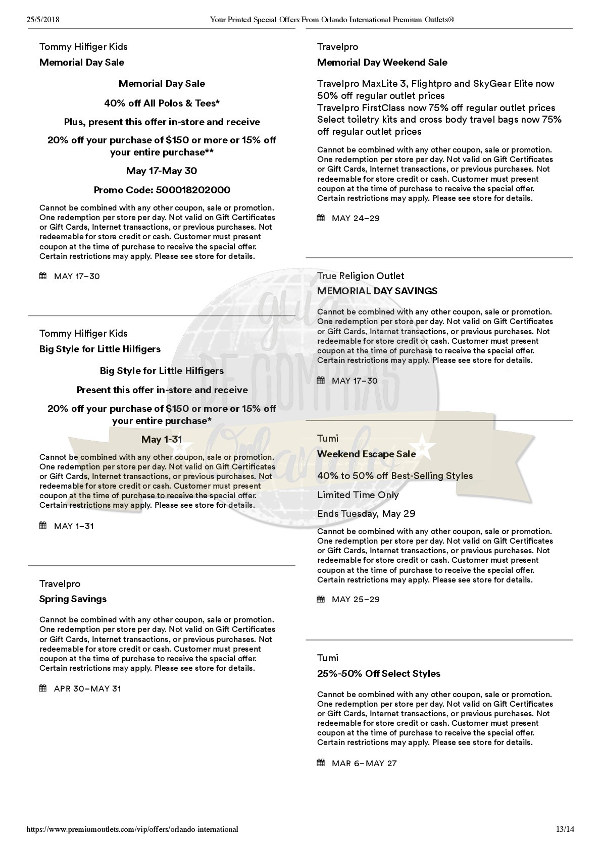Para The Lake Buena Vista Factory Stores®, deben presentar este voucher en la tienda Travel Pro Luggage, en el Mall Office o en la tienda VF.
