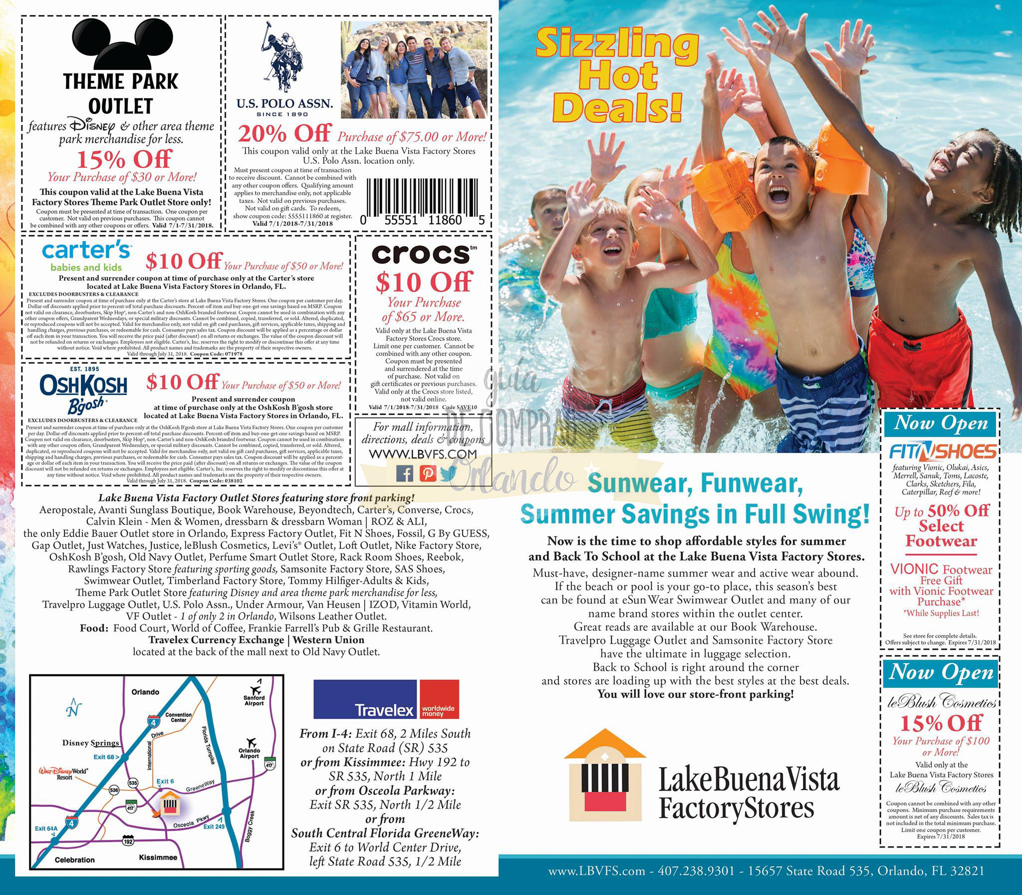 Lake Buena Vista Factiry Stores ® también tiene una cuponera llena de descuentos! un link para conseguir cuponera gratis con descuentos!