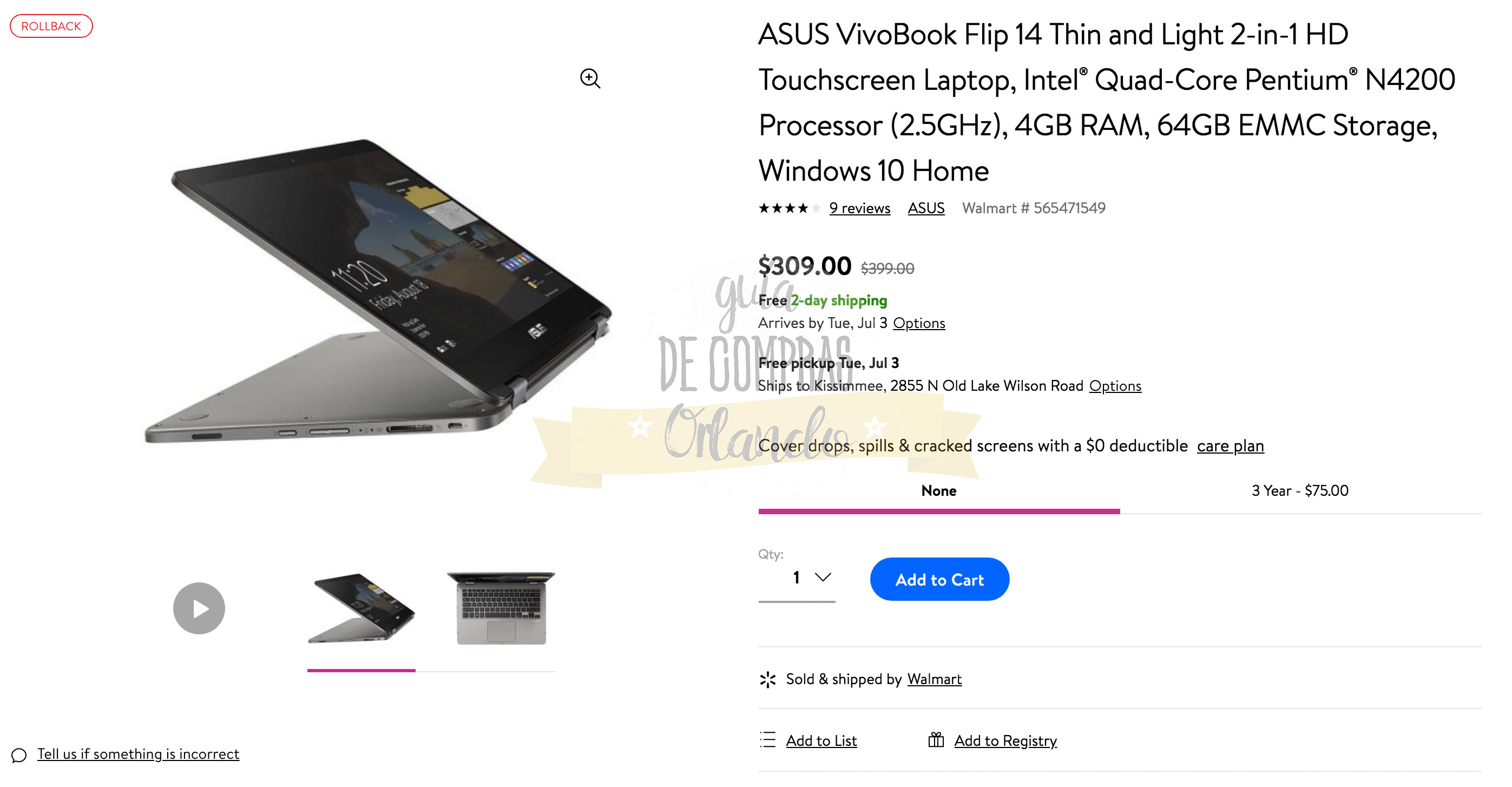 Algunos ejemplos actuales de precios en el nuevo Walmart de Orlando ubicado en 2855 N Old Lake Wilson Road Kissimmee