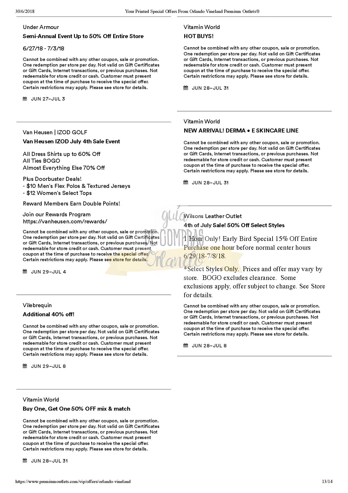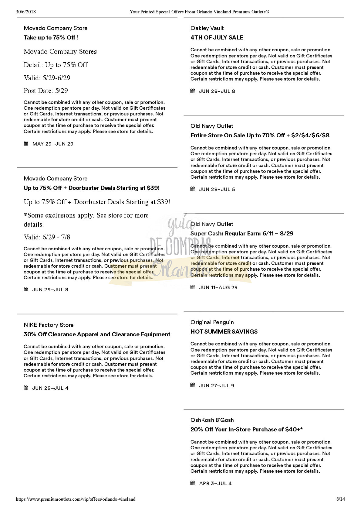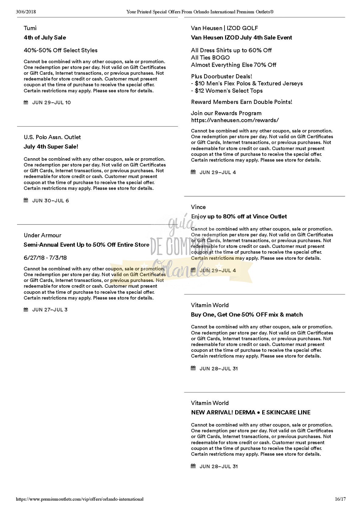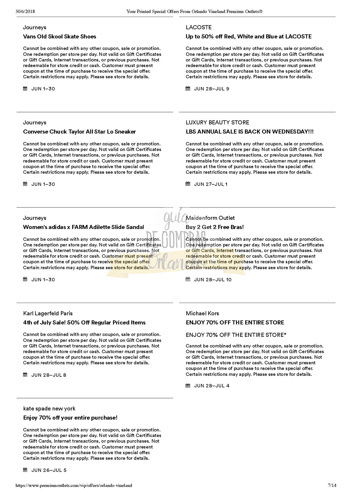 A continuación les dejamos los cupones para las distintas tiendas de Orlando Vineland Premium Outlets ® y unlink para conseguir además una cuponera llena de descuentos distintos a los que acá les damos.