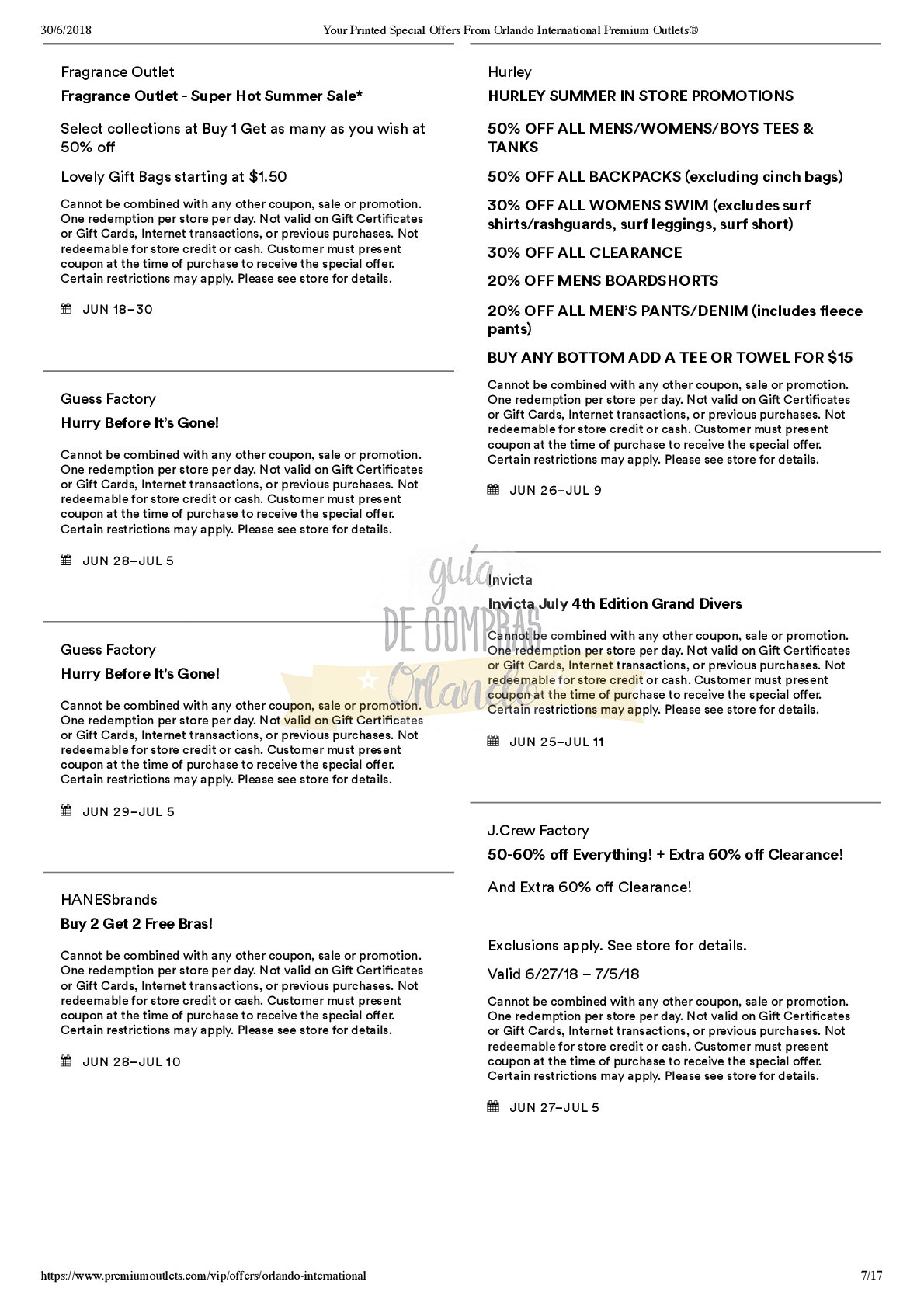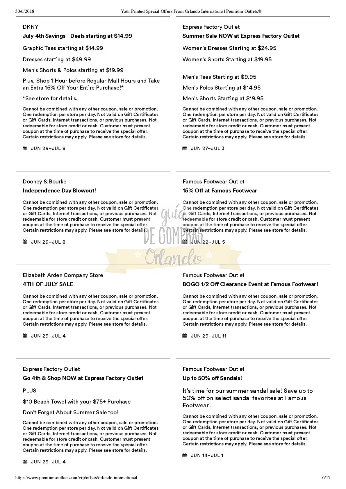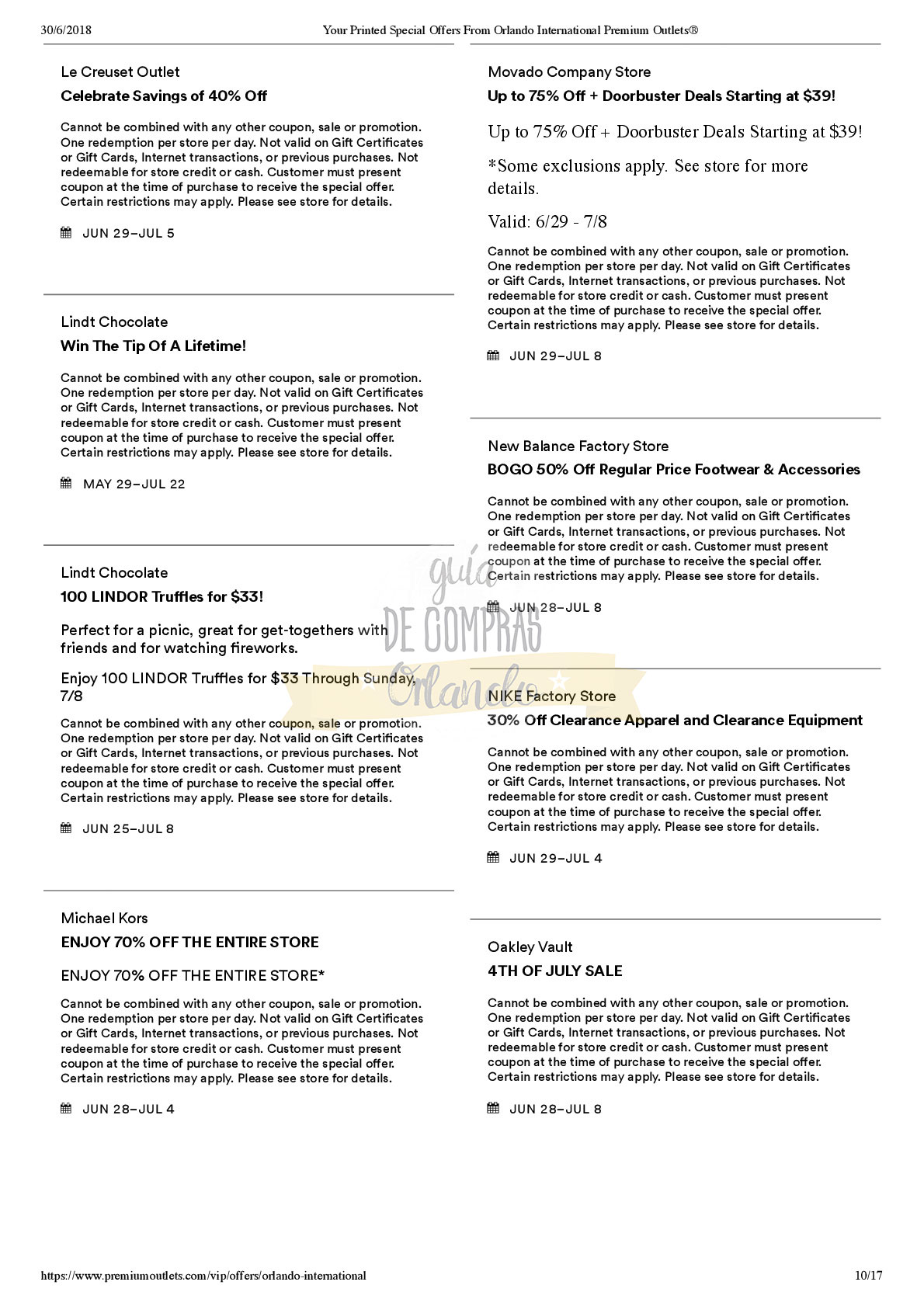 A continuación les dejamos los cupones para las distintas tiendas de Orlando International Premium Outlets ® y un link para conseguir además una cuponera llena de descuentos distintos a los que acá les damos.