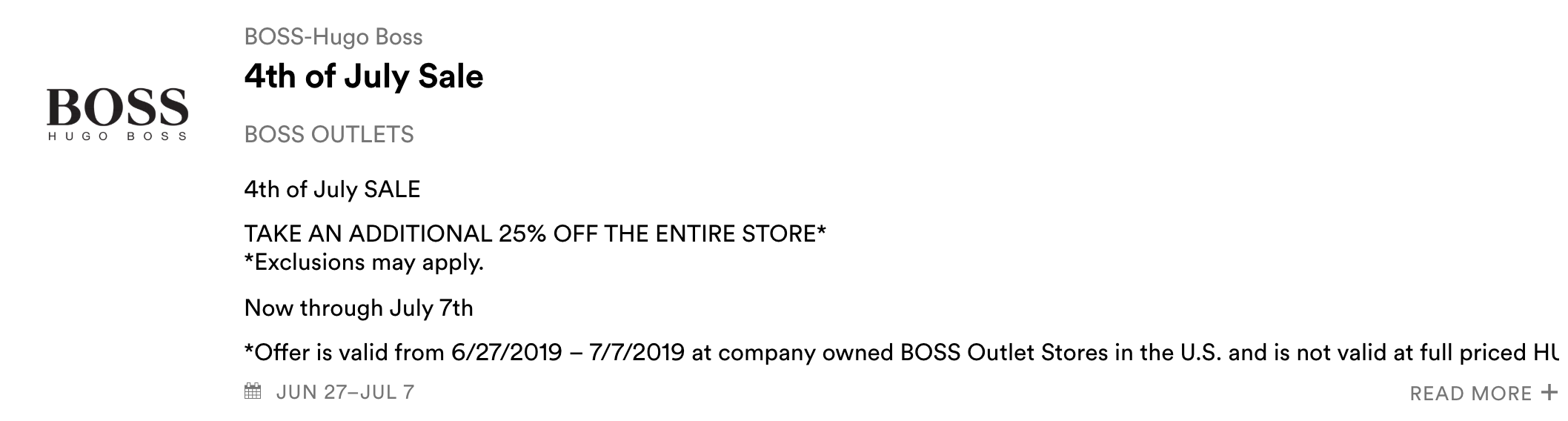 En años anteriores se han llegado a encontrar ahorros del 85% en 6pm,® mientras que en Kohls® y en Jc Penny® ahorros del 80%. En tiendas como Bloomingdales®, Macy’s®, Gap®, Calvin Klein®, Ralph Lauren® o Eddie Bauer® se han encontrado ahorros del de más del 50%.