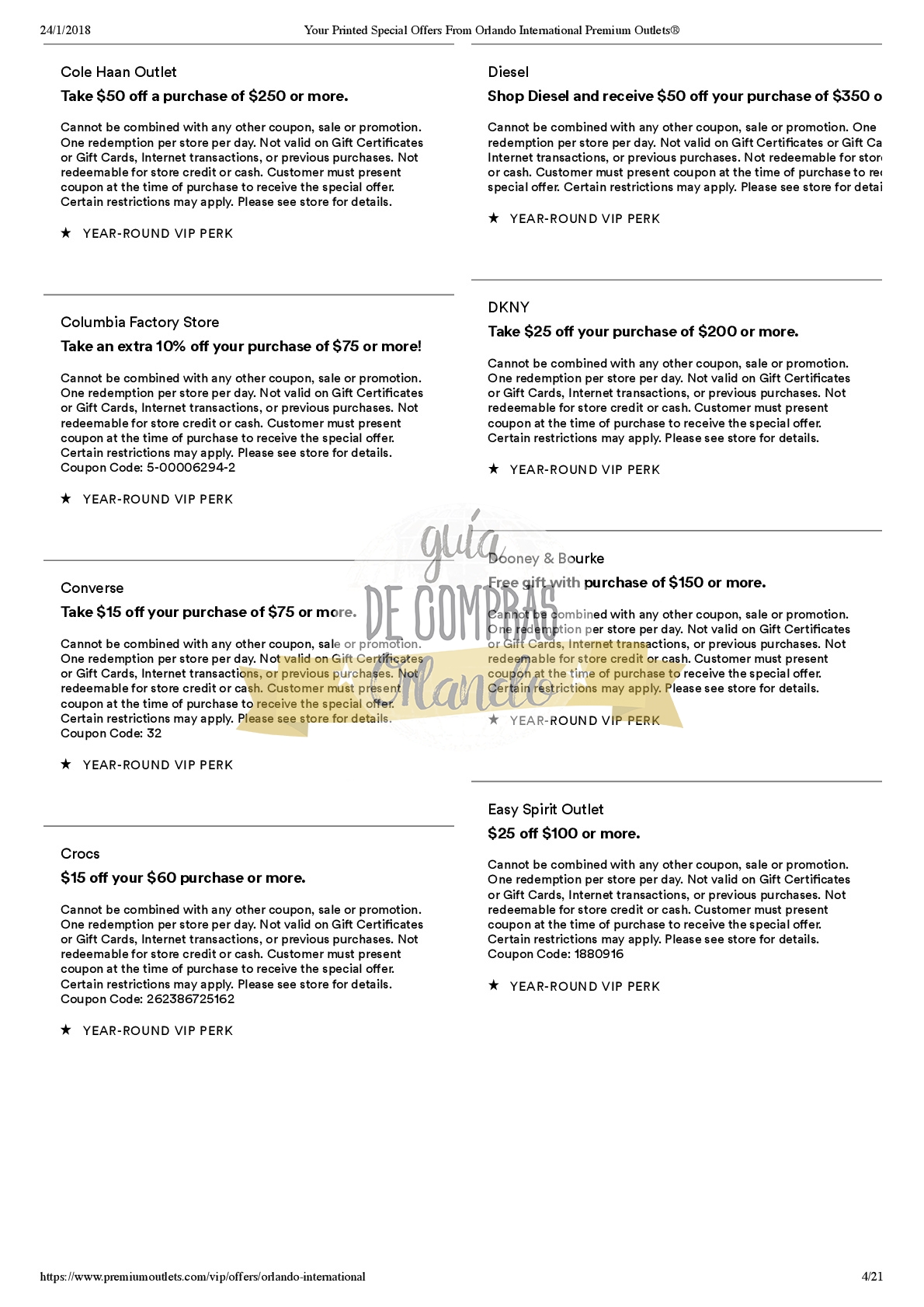 LES DEJAMOS UN VALE PARA CANJEAR POR UNA CUPONERA EXCLUSIVA PARA LOS SEGUIDORES DE GUÍA DE COMPRAS ORLANDO!