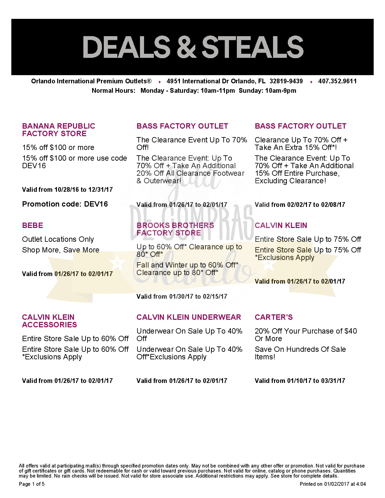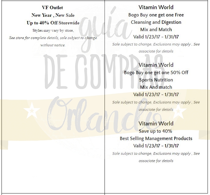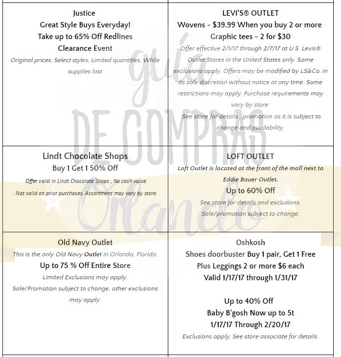 Como siempre les dejamos los cupones de descuentos de los principales Outlets y Shoppings de Orlando. Estén atentos que los iremos actualizando tanto en este artículo, como en nuestro Facebook.