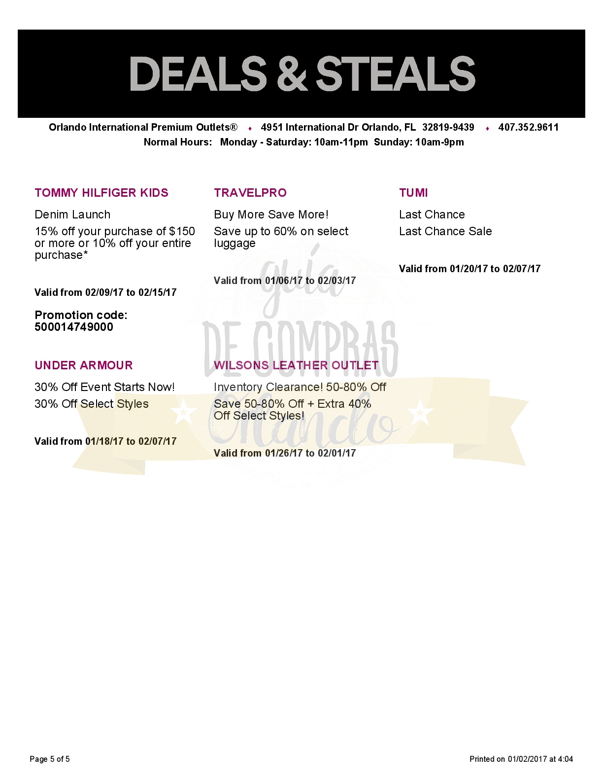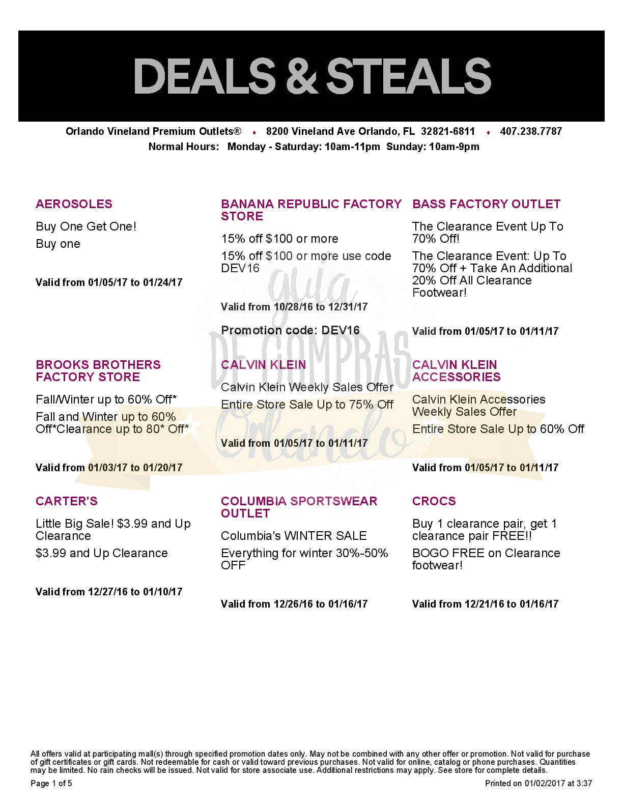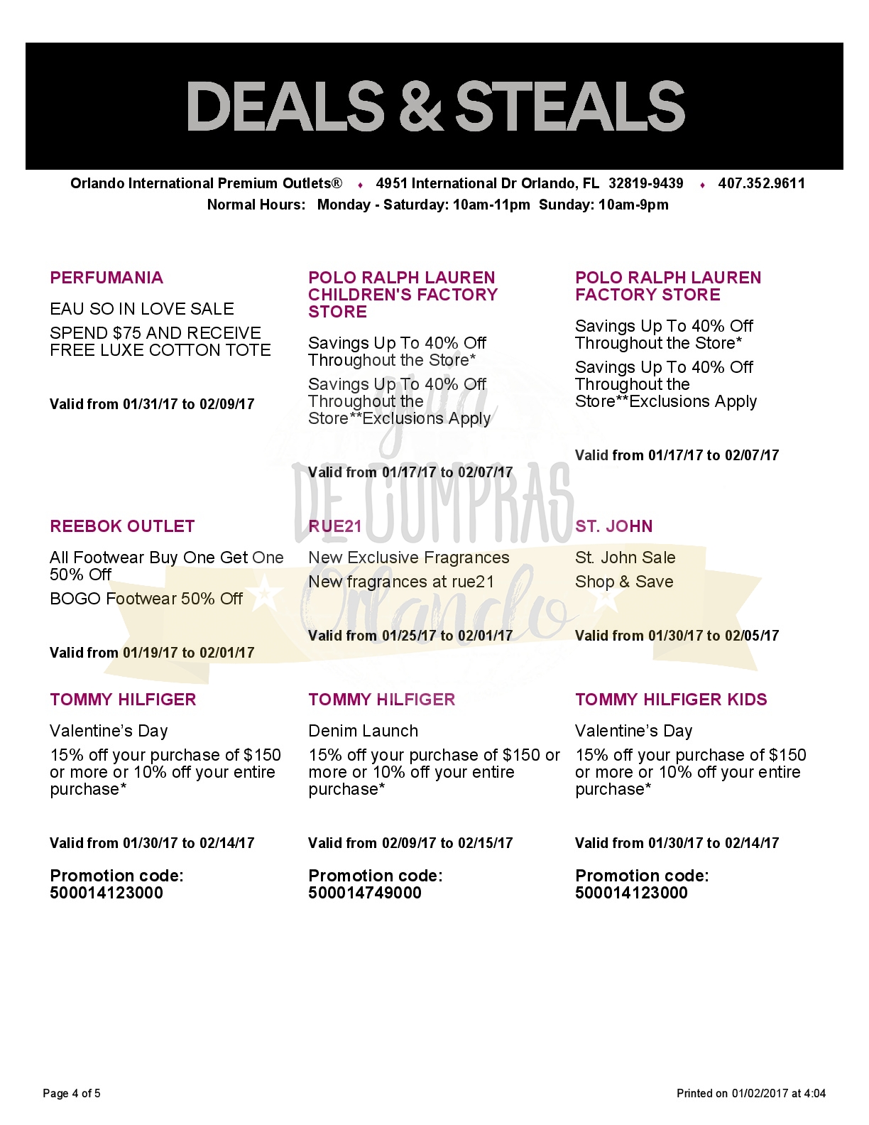 A continuación les dejamos los cupones para las distintas tiendas de Orlando International Premium Outlets ® y un link para conseguir además una cuponera llena de descuentos distintos a los que acá les damos.