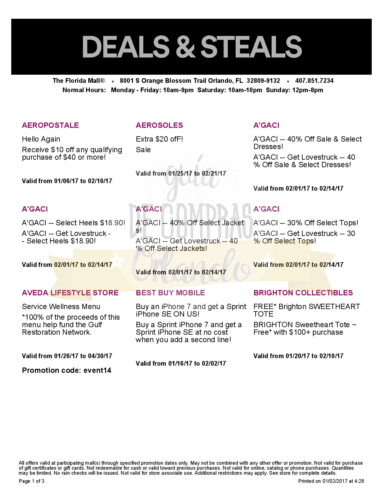 A continuación les dejamos los cupones para el Florida Mall ®, que tiene una variedad enorme de tiendas, algunas exclusivas como Apple Store®, Microsoft Store® o Abercrombie & Fitch®