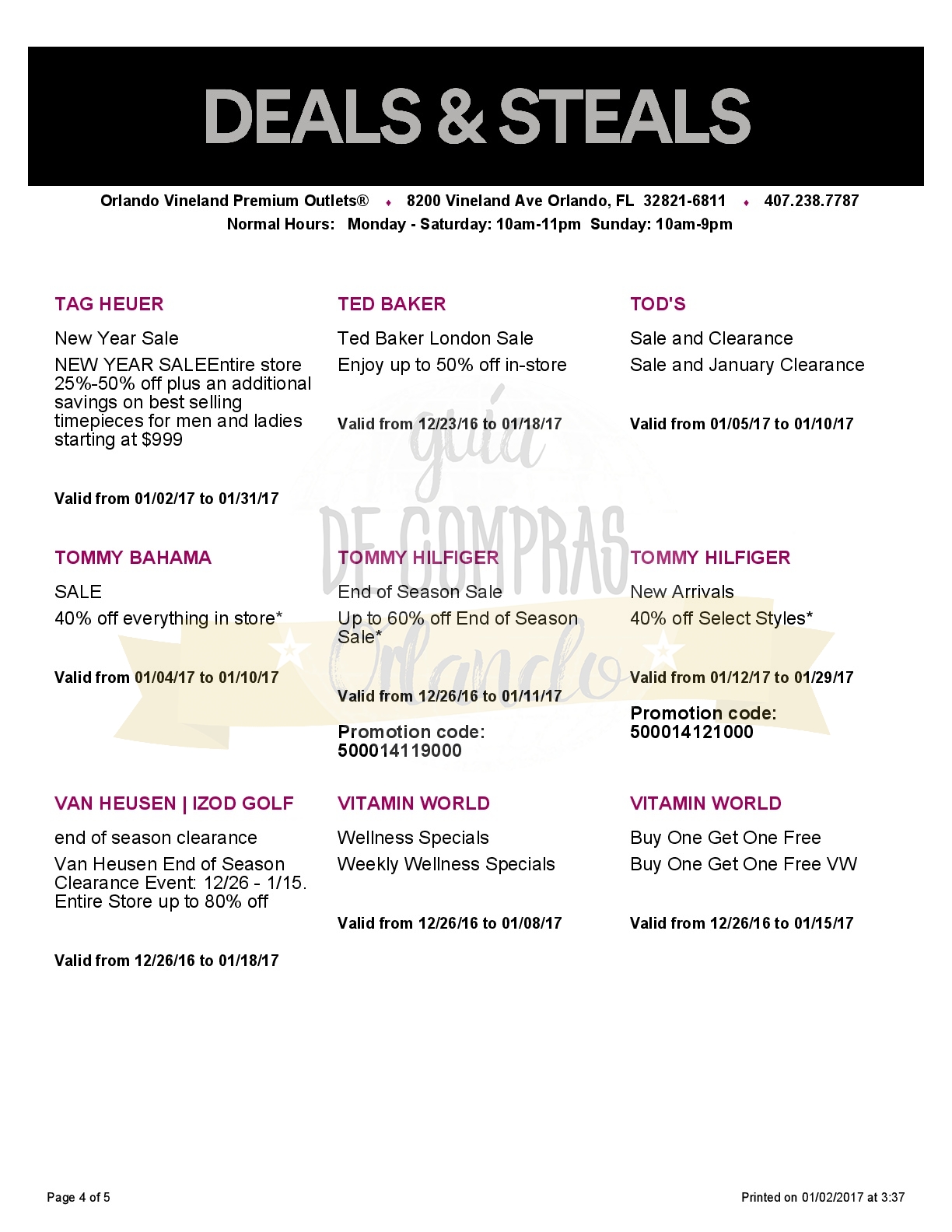 A continuación les dejamos los cupones para las distintas tiendas de Orlando Vineland Premium Outlets ® y unlink para conseguir además una cuponera llena de descuentos distintos a los que acá les damos.