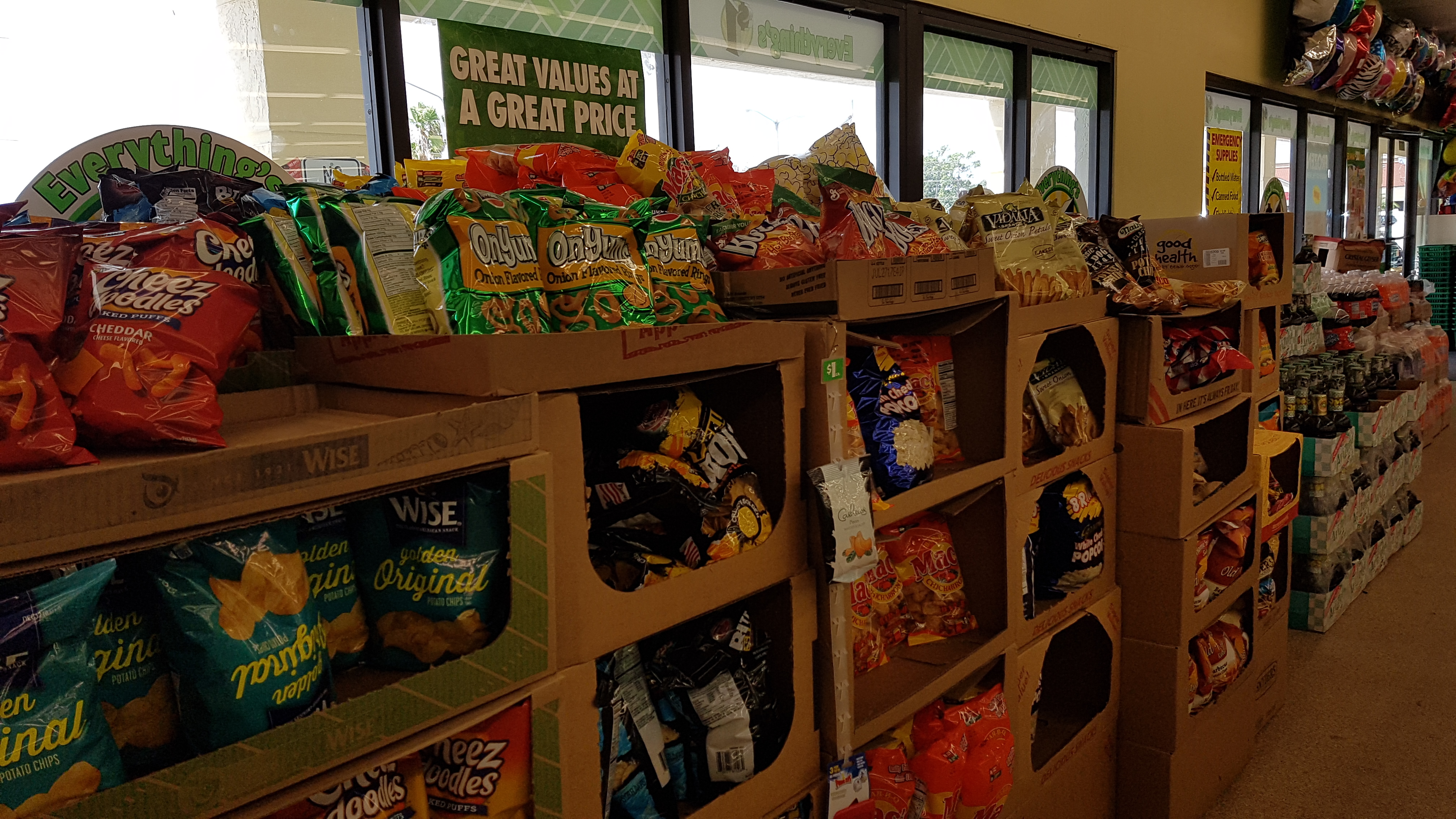 Sólo por hacer algunas comparaciones: una bolsa de unos 400 gramos de sticks de pretzel, que en Walmart® puede costar entre 2,50$ a 4$ se consigue por 1$. Pasta de dientes Colgate®, en varios modelos comparable a más de 2$ en cualquier supermercado, cepillo para el pelo, 8 pilas (pueden costar más de 4$ en Walmart®), Ibuprofeno 25 unidades (En oferta en Walmart® no menos de 2,50$), 5 máquinas de afeitar (No menos de $5,00 en los supermercados), un rollo de cinta silver tape (cinta americana), y un largo etcétera que si se busca en otros lugares serán con seguridad más caros.