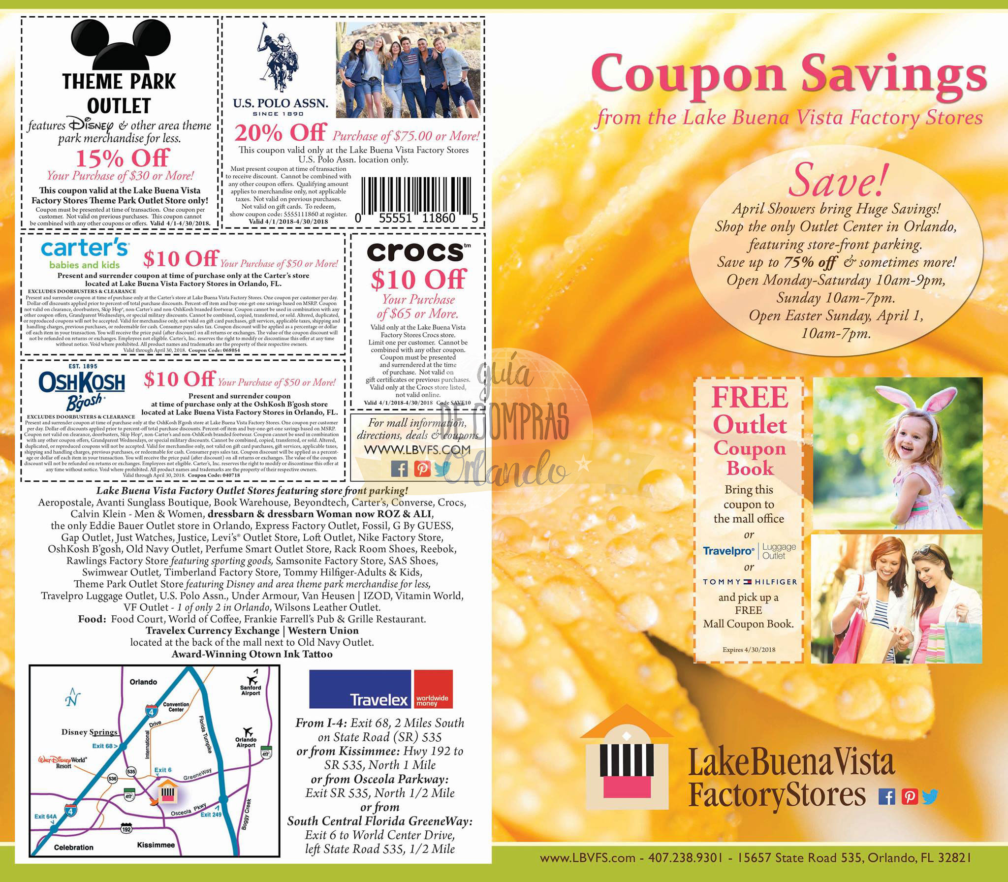 Lake Buena Vista Factiry Stores ® también tiene una cuponera llena de descuentos! un link para conseguir cuponera gratis con descuentos!