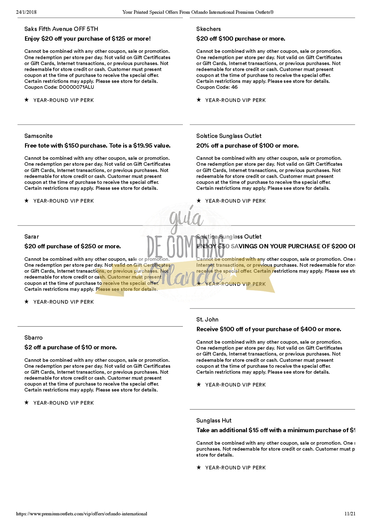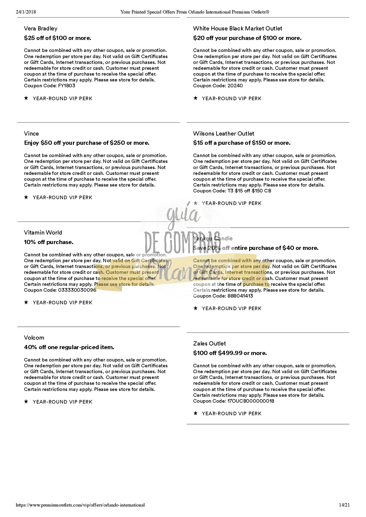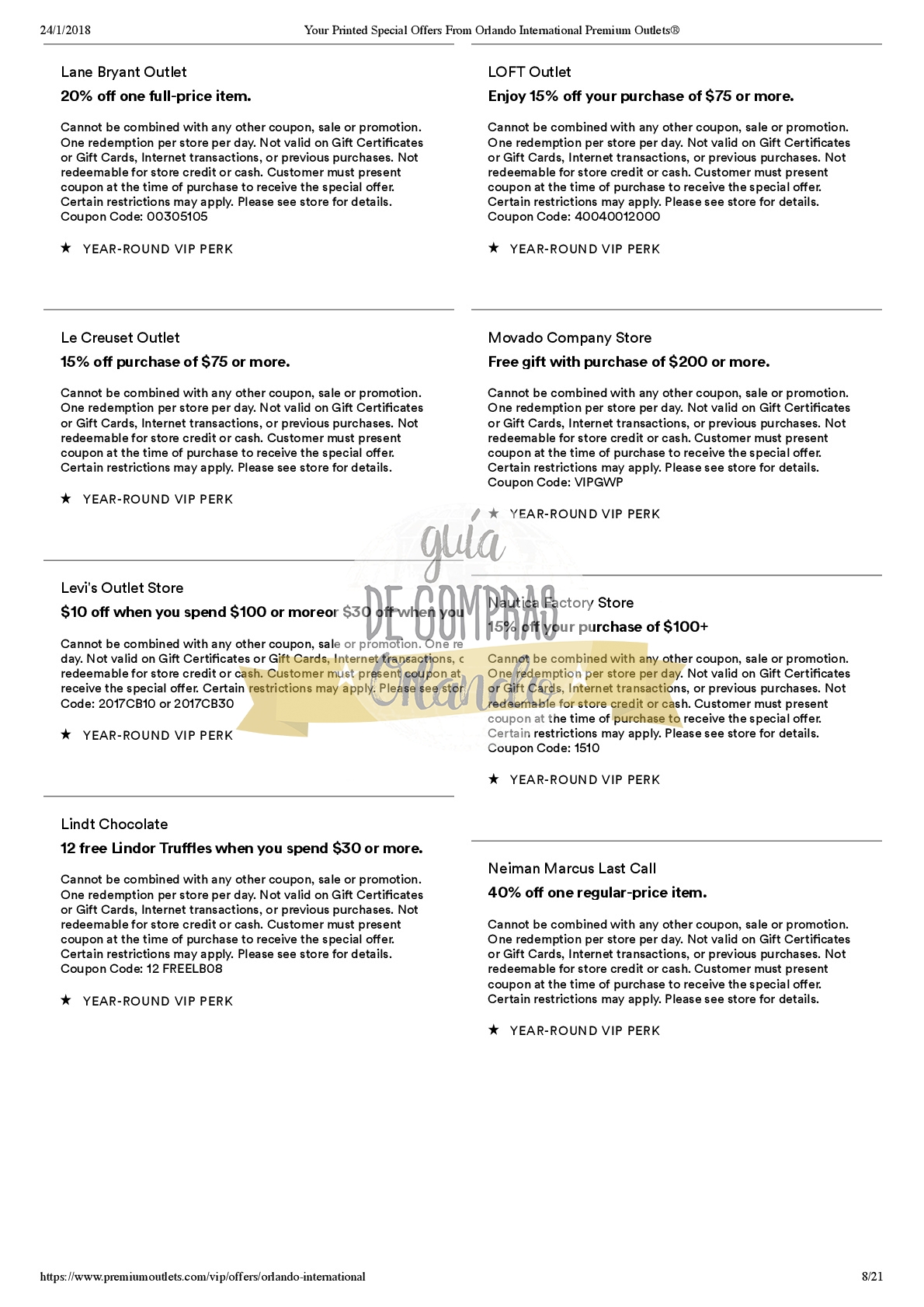 LES DEJAMOS UN VALE PARA CANJEAR POR UNA CUPONERA EXCLUSIVA PARA LOS SEGUIDORES DE GUÍA DE COMPRAS ORLANDO!