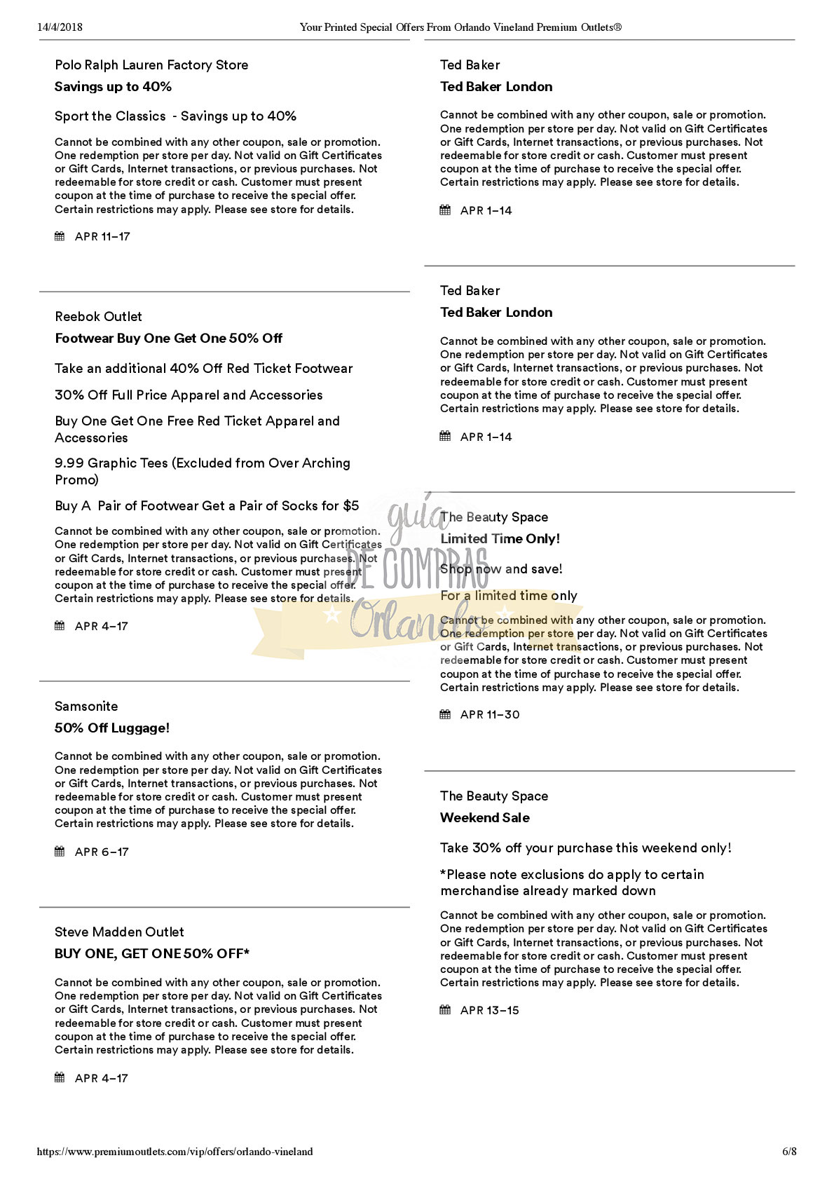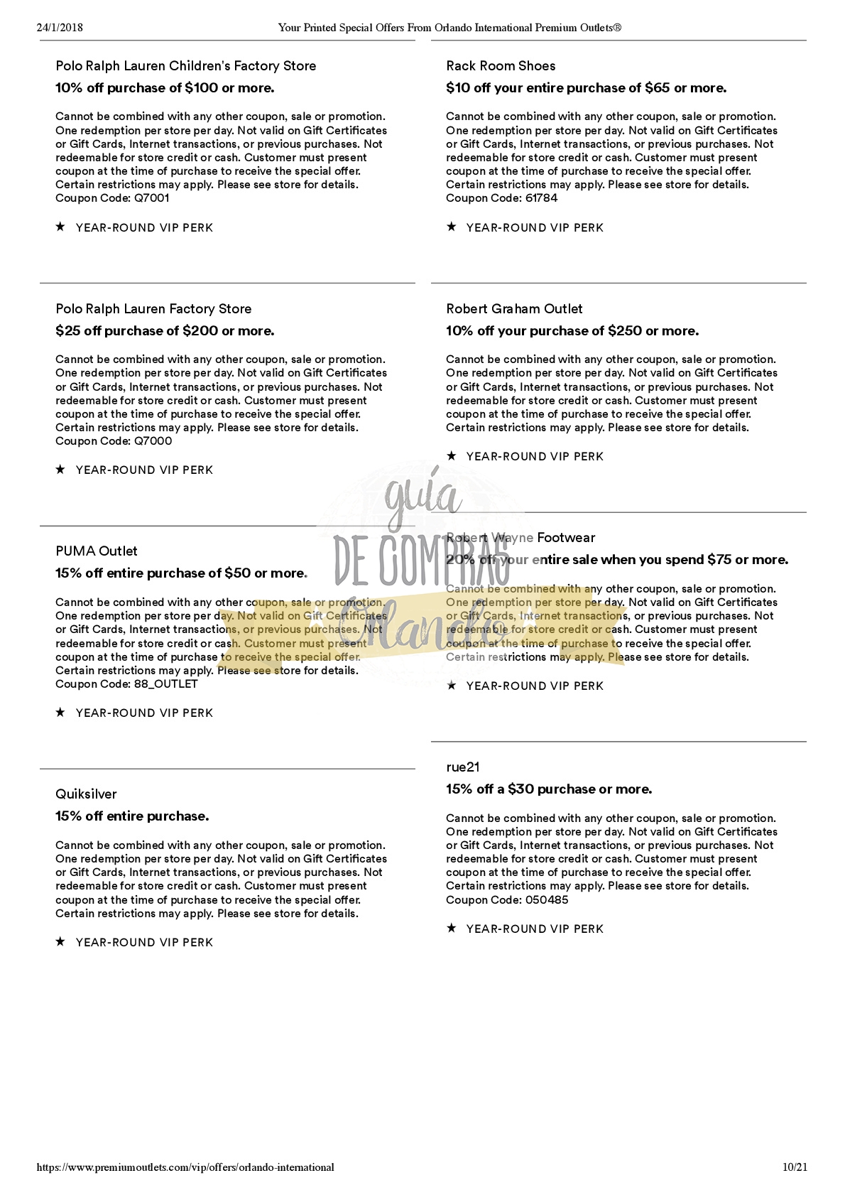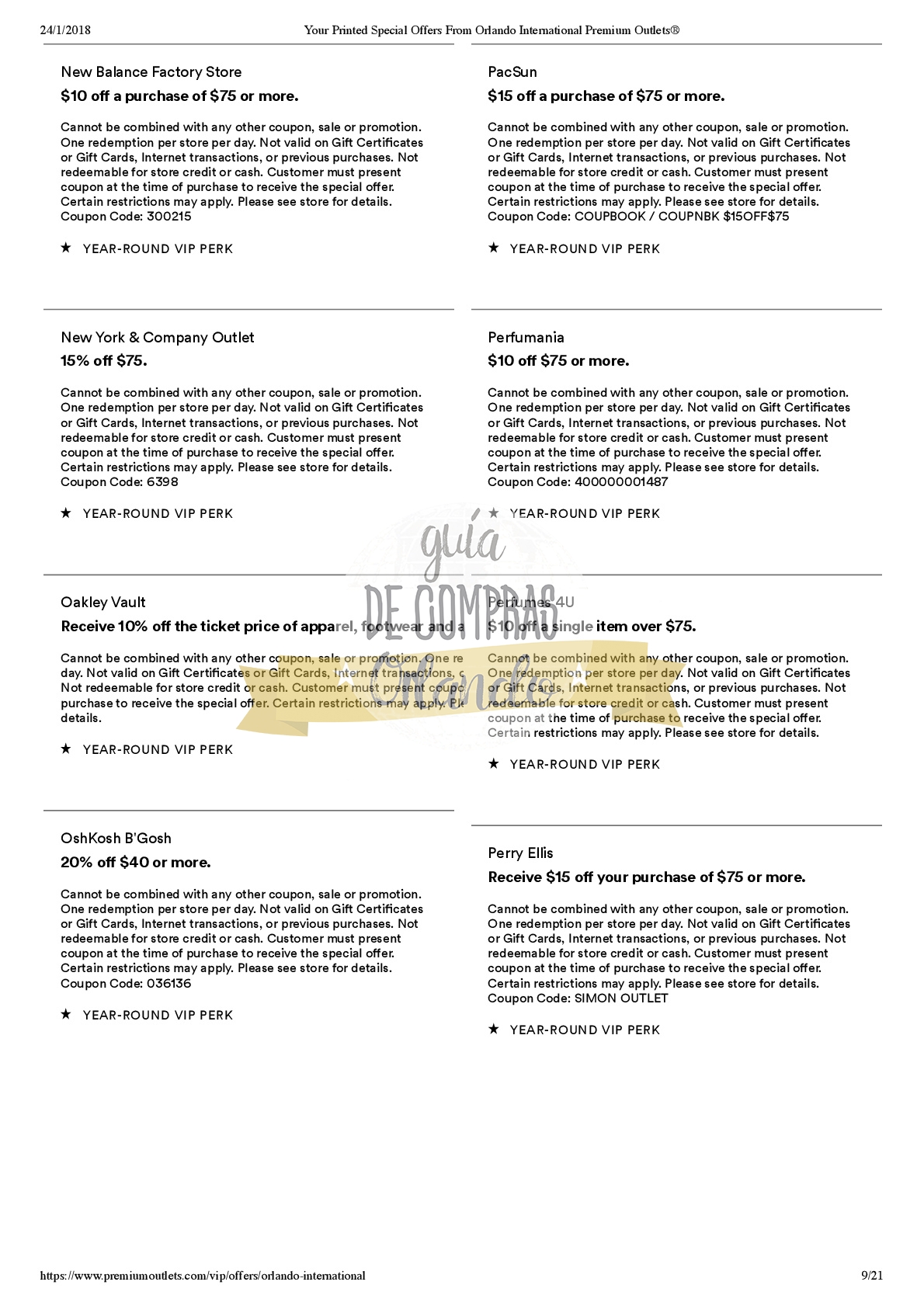 LES DEJAMOS UN VALE PARA CANJEAR POR UNA CUPONERA EXCLUSIVA PARA LOS SEGUIDORES DE GUÍA DE COMPRAS ORLANDO!
