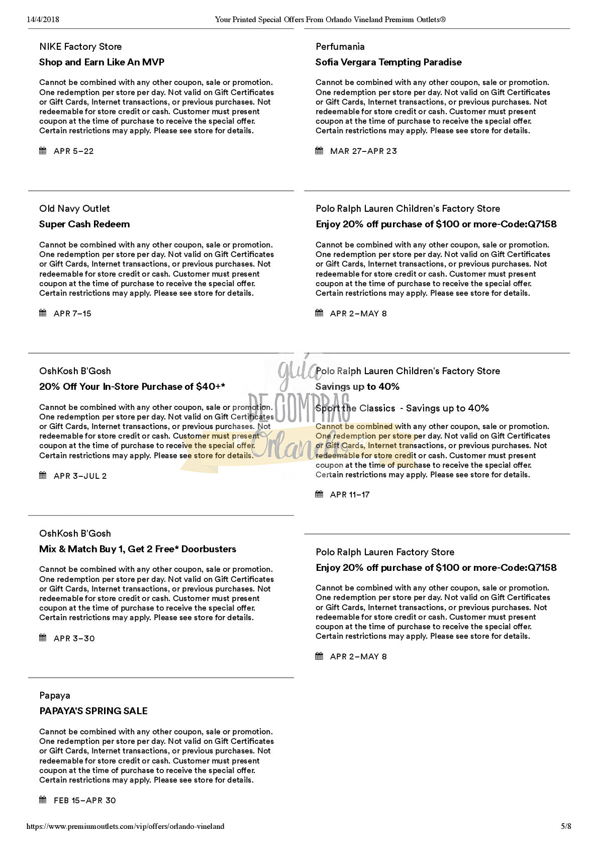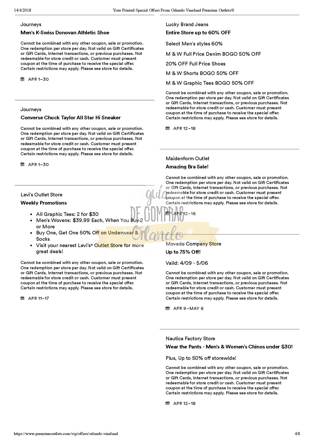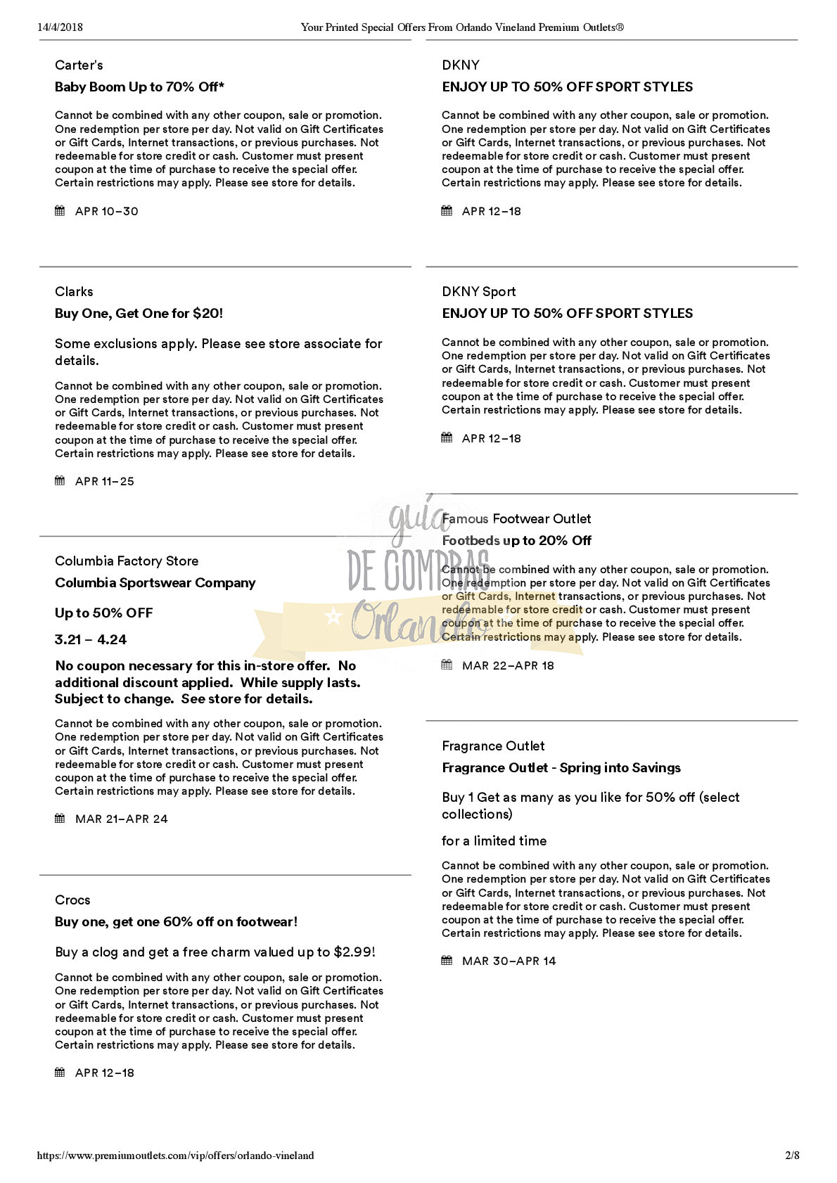 A continuación les dejamos los cupones para las distintas tiendas de Orlando International Premium Outlets ® y un link para conseguir además una cuponera llena de descuentos distintos a los que acá les damos.