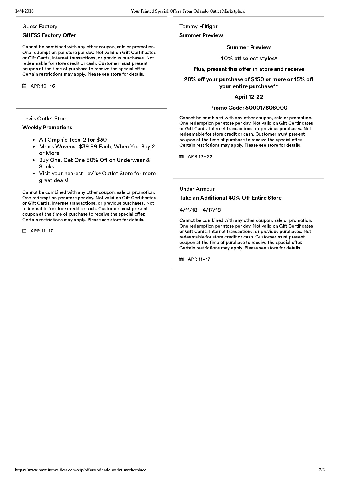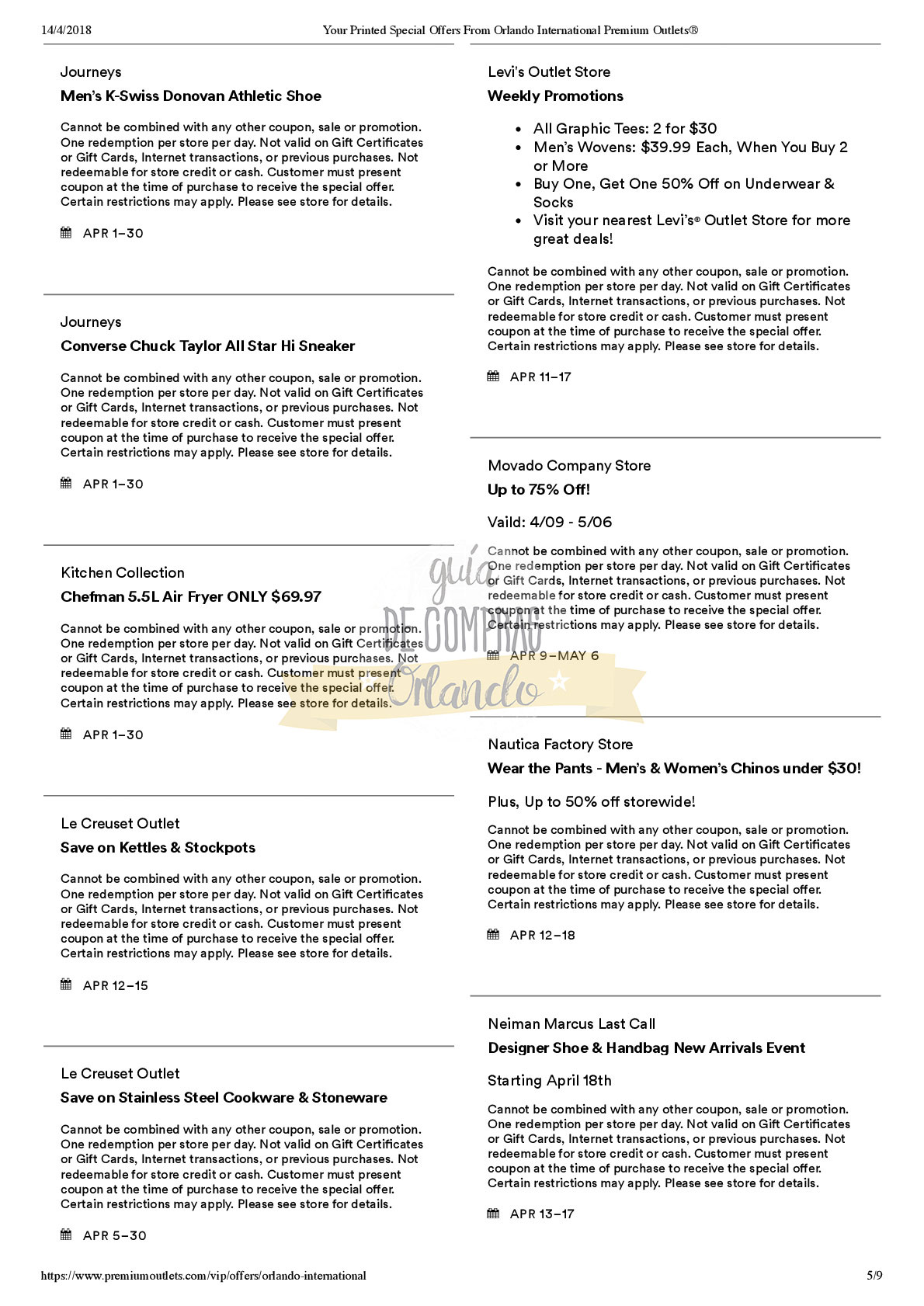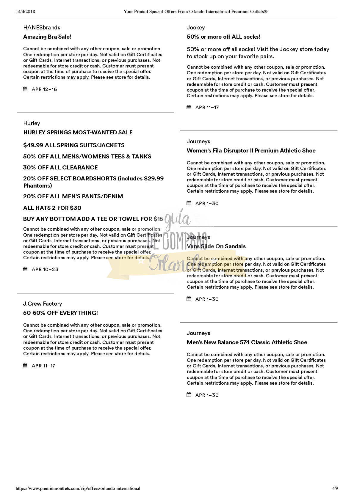 A continuación les dejamos los cupones para las distintas tiendas de Orlando International Premium Outlets ® y un link para conseguir además una cuponera llena de descuentos distintos a los que acá les damos.