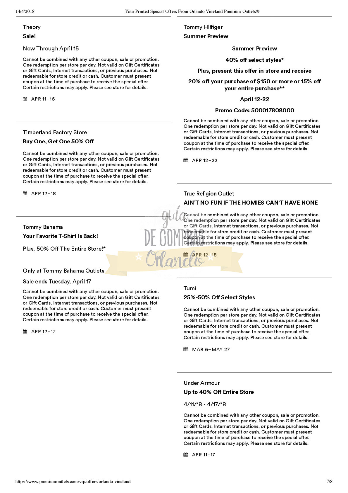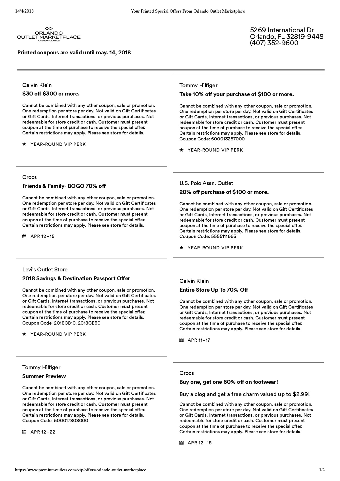 A continuación les dejamos los cupones para las distintas tiendas de Orlando Vineland Premium Outlets ® y unlink para conseguir además una cuponera llena de descuentos distintos a los que acá les damos.