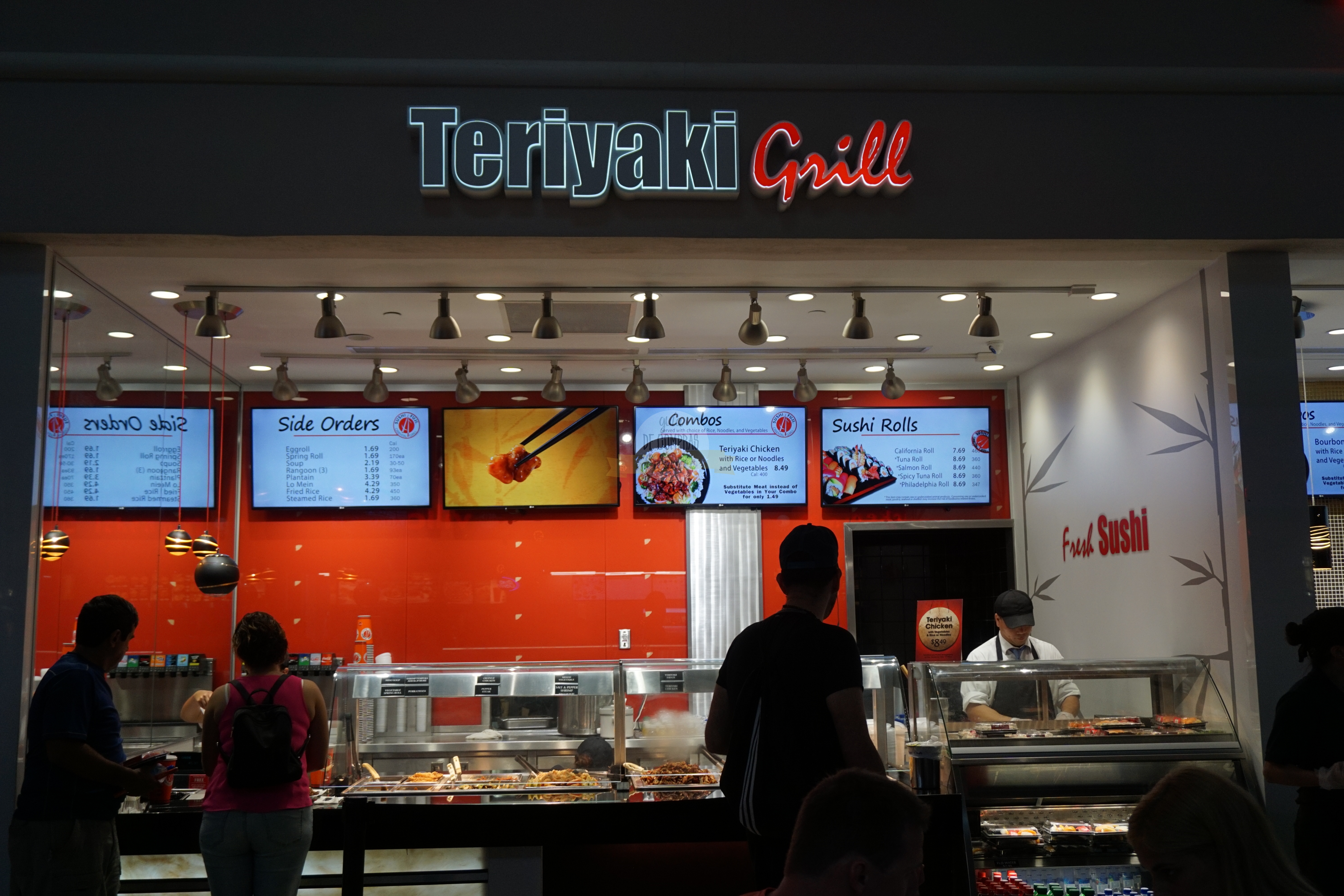 - Hay patio de comidas-Food Court- (zona de restaurantes). La oferta es muy variada. A parte de locales de renombre como Starbucks®, Subway® o Sbarro®, podrán encontrar algunos especializados en sushi, pastas, comida japonesa, hamburguesas o pollo.