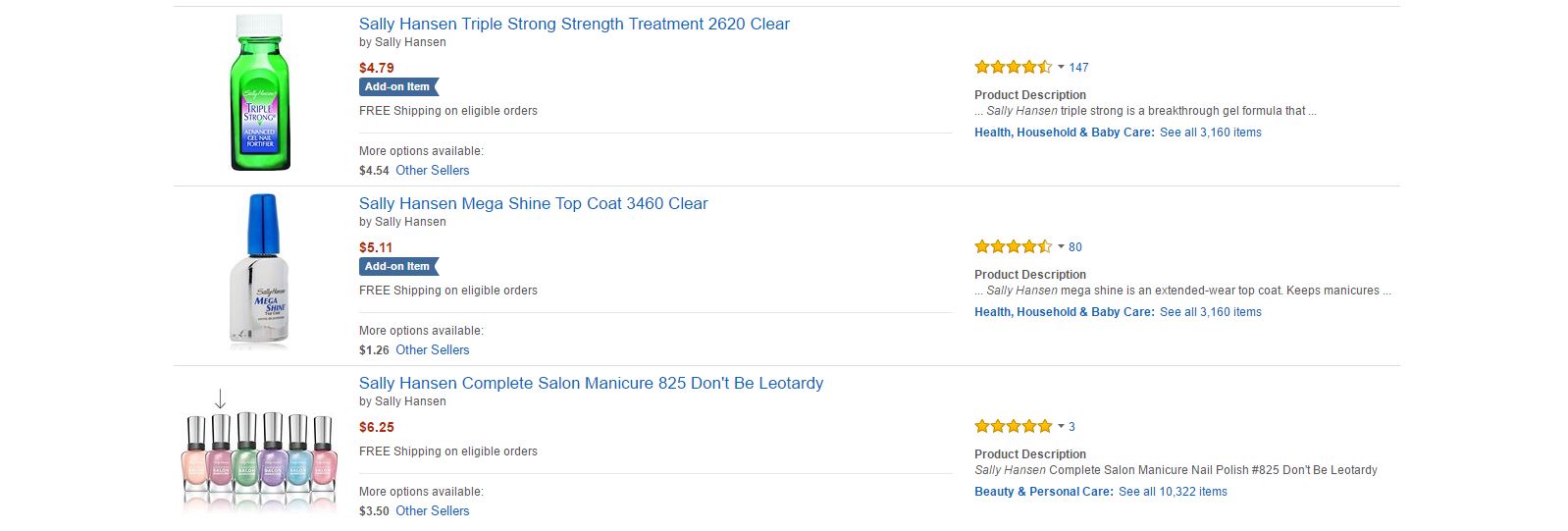 Si prefieren comprar on line, porque ya conocen la marca, estos son algunos ejemplos de artículos de Sally Hansen ® que podrán encontrar en Amazon ®.