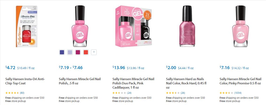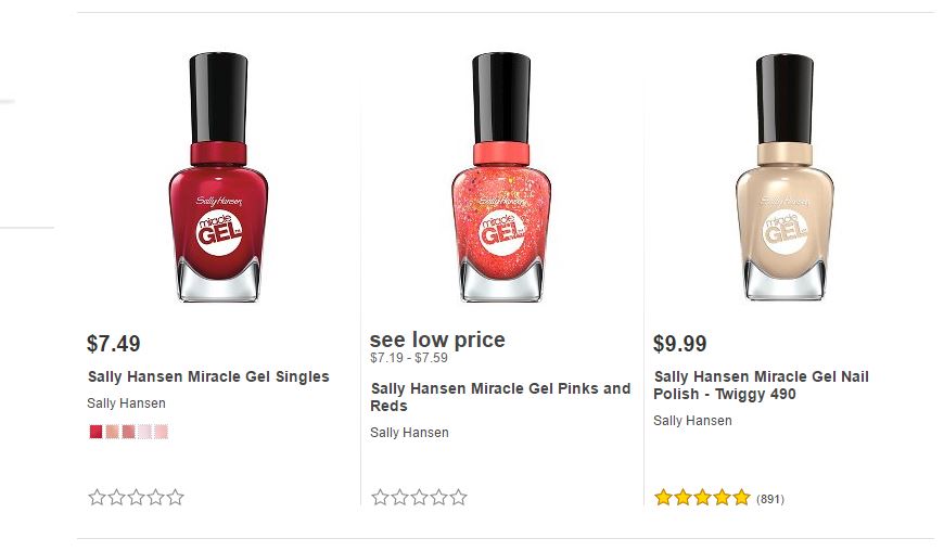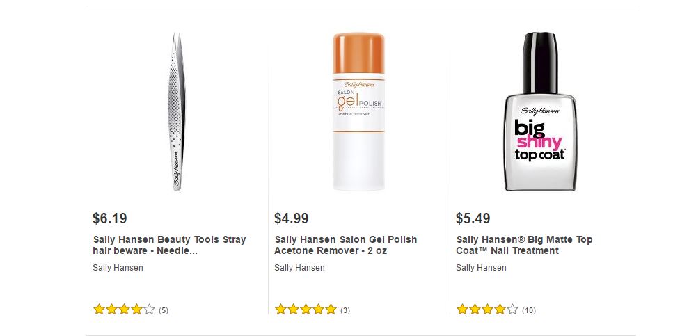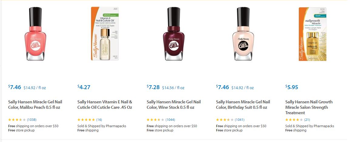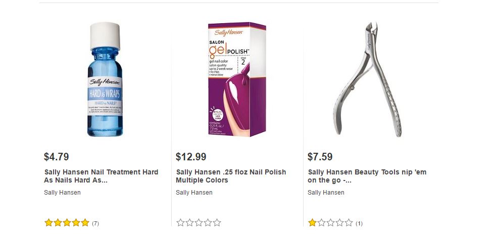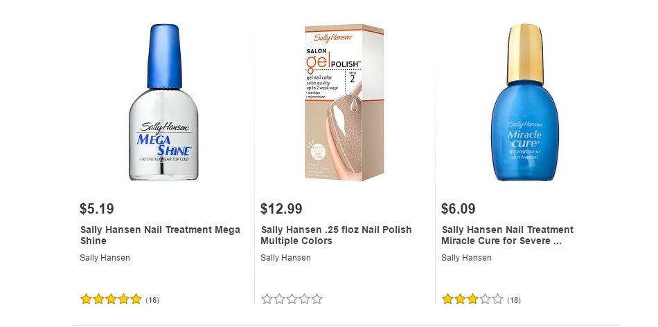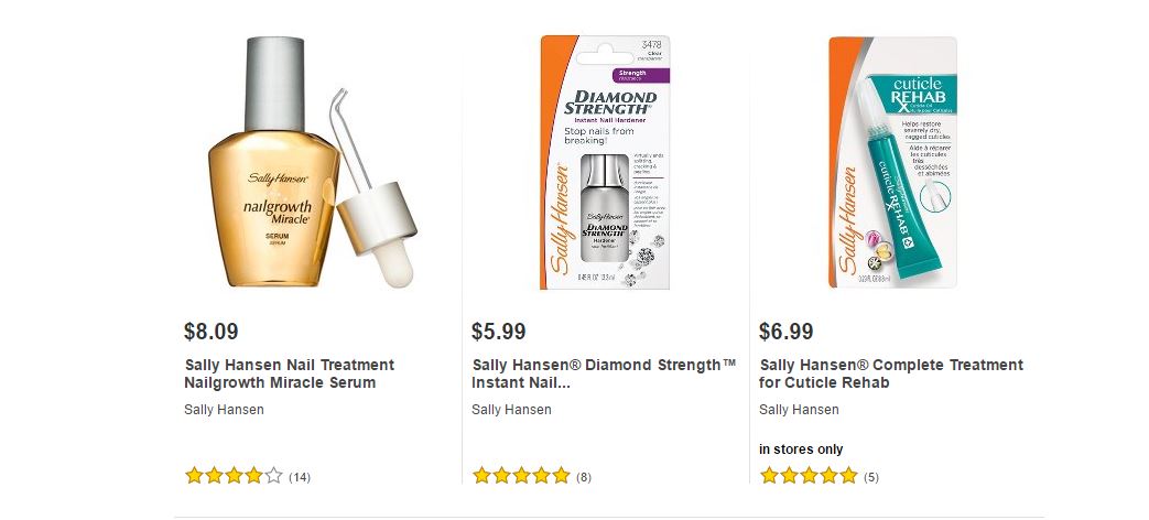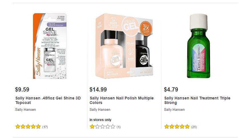 Les dejamos algunos de los artículos de Sally Hansen ® que podrán encontrar en Target ® y sus respectivos precios para que puedan comparar ustedes mismos y decidir dónde les conviene comprarlos.