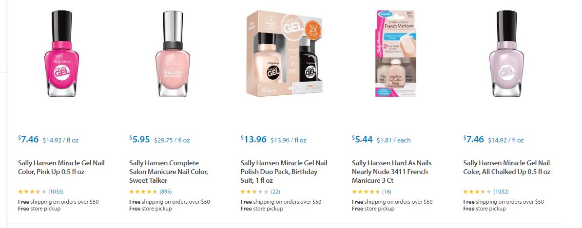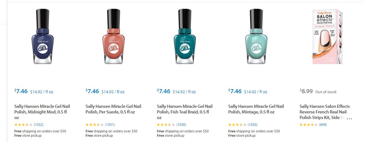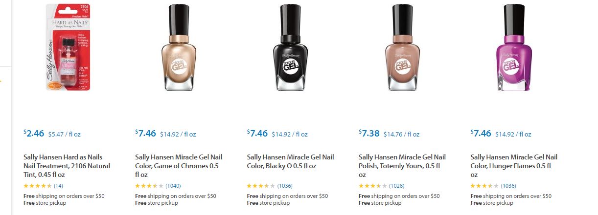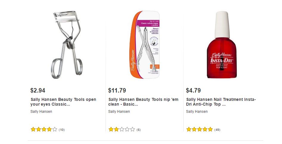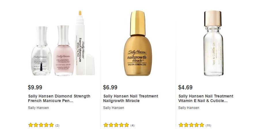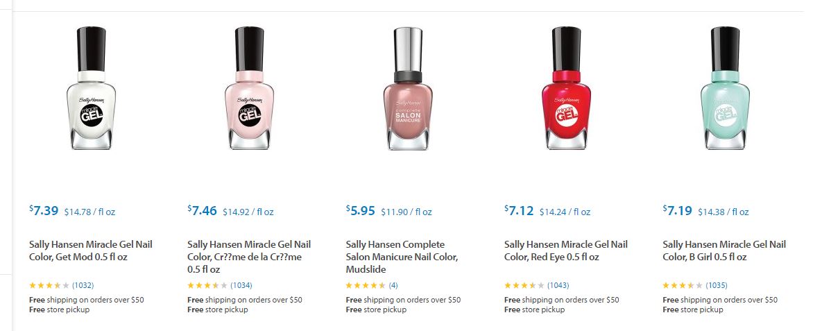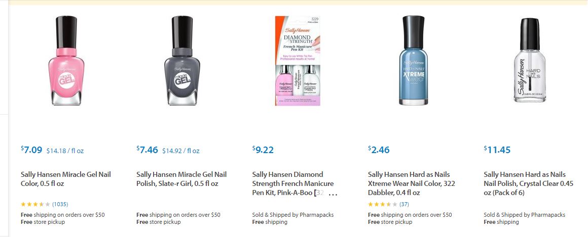 Les dejamos algunos de los artículos de Sally Hansen ® que podrán encontrar en Target ® y sus respectivos precios para que puedan comparar ustedes mismos y decidir dónde les conviene comprarlos.