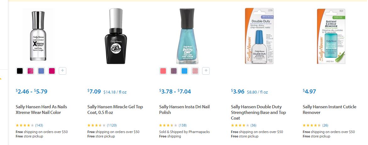Estos son algunos de los artículos de Sally Hansen ® que podrán encontrar en Walmart ® y sus precios.